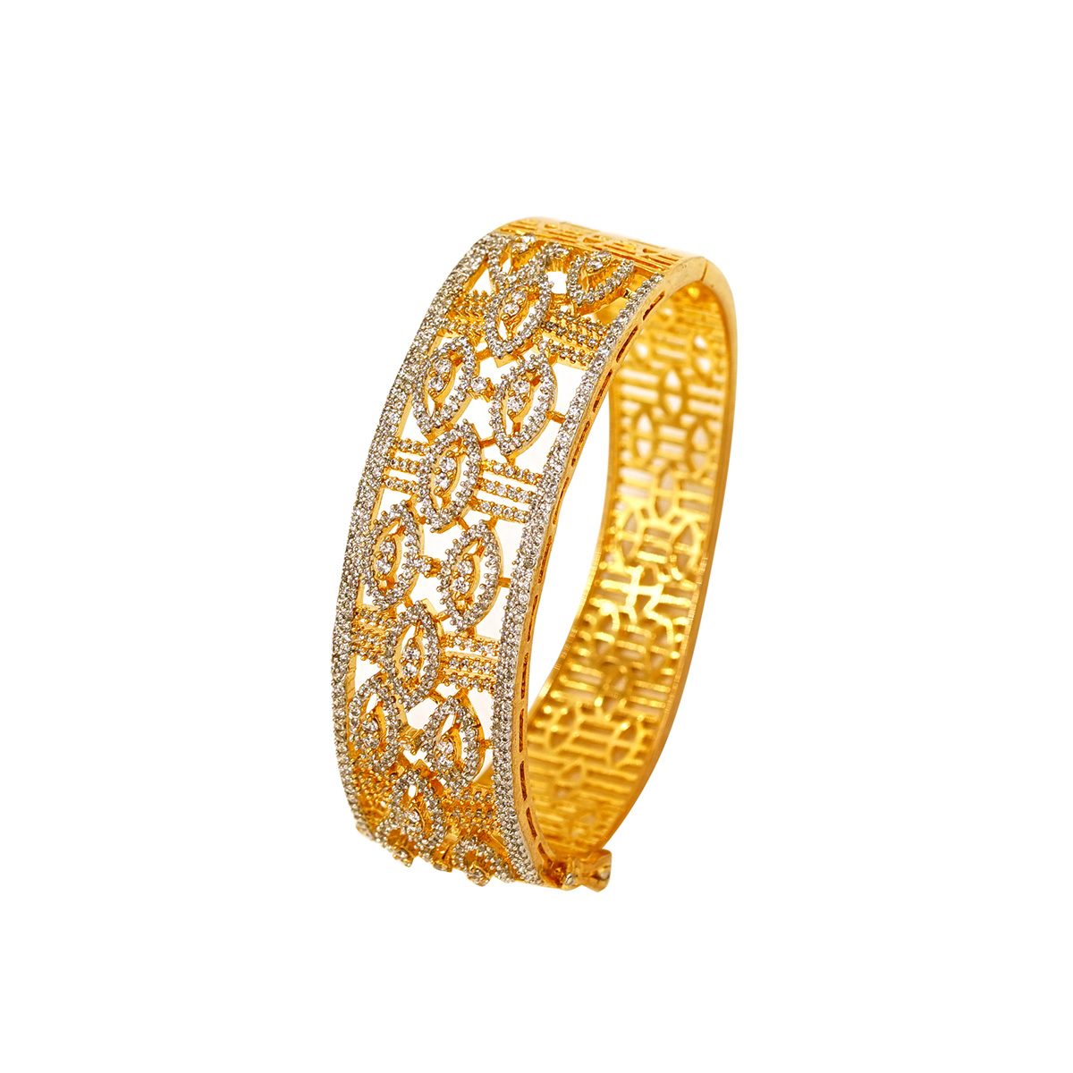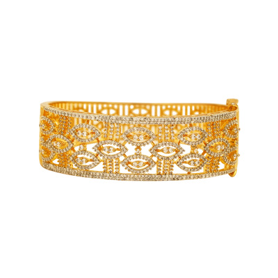 DESCRIPTION - THIS BRACELET SHOWCASES A BEAUTIFUL BLEND OF GEOMETRIC PATTERNS HIGHLIGHTED WITH SPARKLING DIAMOND-STYLE STONES. PERFECT FOR WEDDINGS, FESTIVE EVENTS, AND SPECIAL OCCASIONS, THIS BRACELET BRINGS AN ELEGANT, MODERN TOUCH TO TRADITIONAL STYLE.