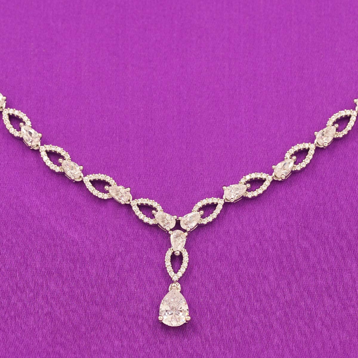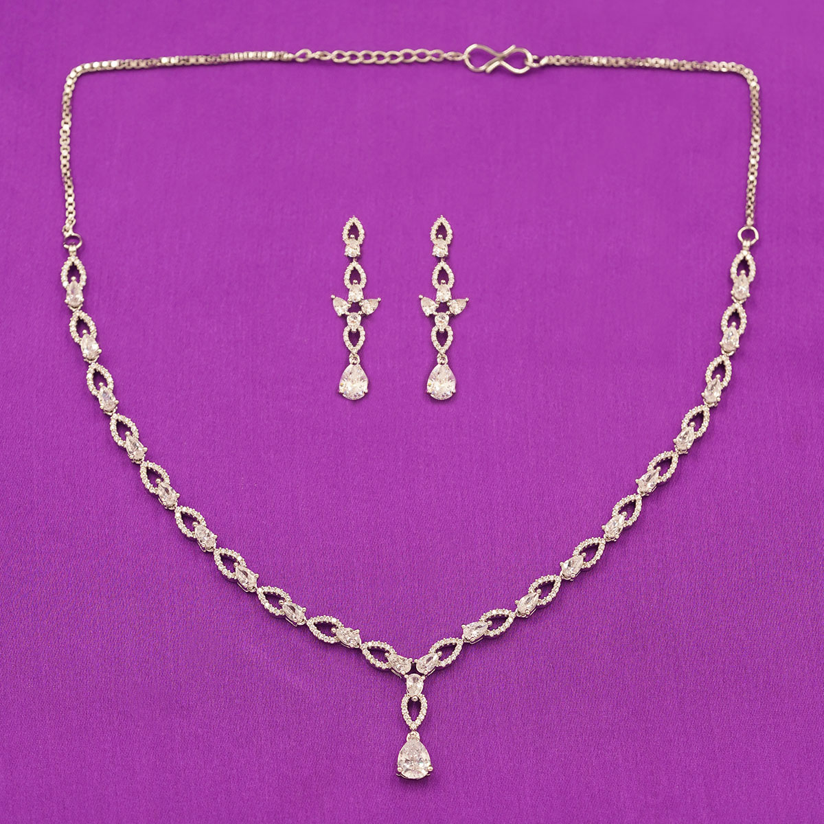 DESCRIPTION - GRACEFUL AND UNDERSTATED, THE DELICATE DROP ELEGANCE SET IS DESIGNED FOR THOSE WHO LOVE TIMELESS BEAUTY WITH A MODERN TOUCH. FEATURING A FINE CHAIN NECKLACE ADORNED WITH A SINGLE SPARKLING DROP PENDANT, PERFECTLY PAIRED WITH MATCHING DROP EARRINGS, THIS SET ADDS A SOFT SHIMMER TO ANY LOOK. IDEAL FOR BOTH EVERYDAY WEAR AND SPECIAL OCCASIONS, IT COMPLEMENTS DRESSES, SAREES, AND EVENING ENSEMBLES WITH EFFORTLESS CHARM. A MUST-HAVE ACCESSORY FOR ELEGANT SIMPLICITY AND REFINED STYLE.