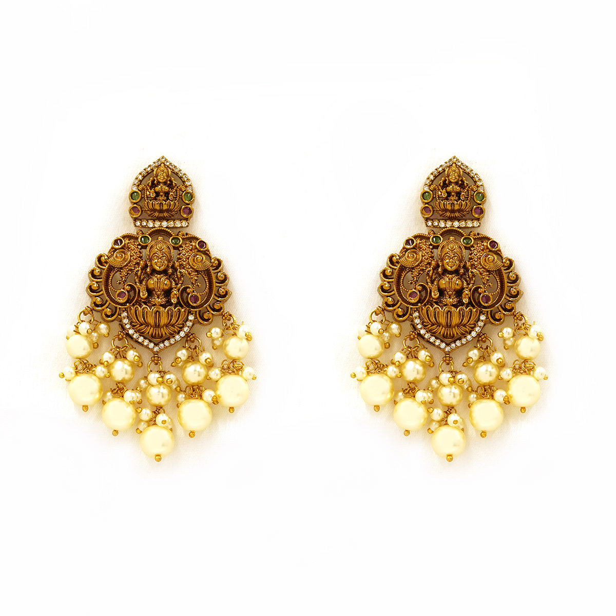 DESCRIPTION - A MAJESTIC MULTI-STRAND PEARL NECKLACE ADORNED WITH AN INTRICATELY CRAFTED KUNDAN-STYLE GOLD TONE PENDANT, FINISHED WITH DELICATE PEARL DROPS FOR A ROYAL TOUCH. PAIRED WITH MATCHING CHANDELIER EARRINGS, THIS ELEGANT SET BLENDS TRADITIONAL ARTISTRY WITH TIMELESS GRACE—PERFECT FOR BRIDAL WEAR, WEDDINGS, AND GRAND FESTIVE OCCASIONS. A STATEMENT PIECE THAT EXUDES HERITAGE CHARM AND SOPHISTICATION.