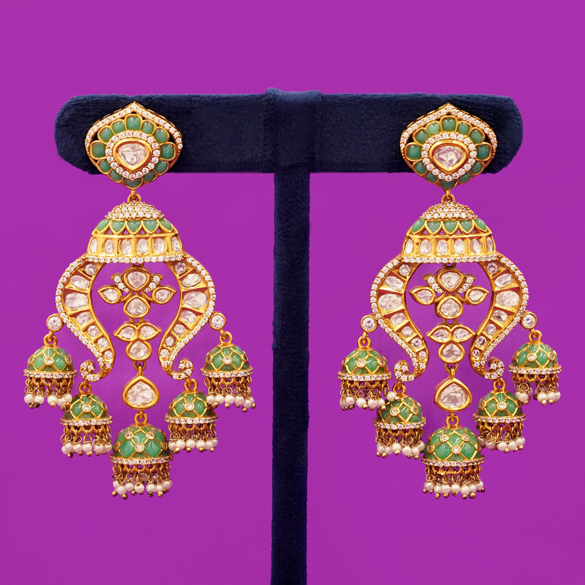 Turquoise Kundan Multi-Jhumka Chandbali Earrings
