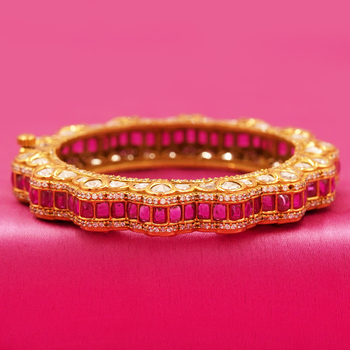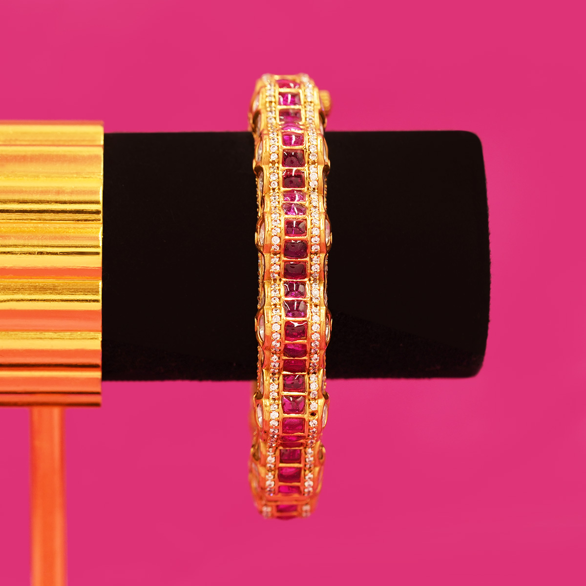 Bangle - Royal Ruby Stone Gold-Finish Square-Cut Designer Bangle