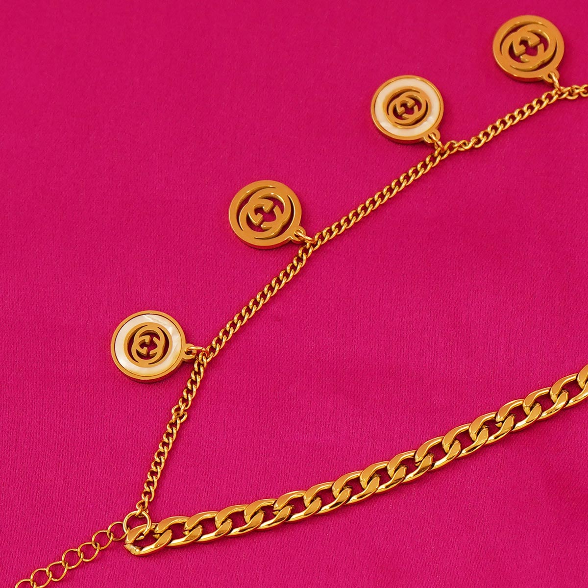 DESCRIPTION - Make a bold yet elegant statement with this Dual Layer Golden Bracelet Set, featuring a stylish combination of a chain-link bracelet and a charm bracelet with sleek circular motifs. The layered design adds a trendy, modern touch to any outfit — perfect for both everyday wear and special occasions.