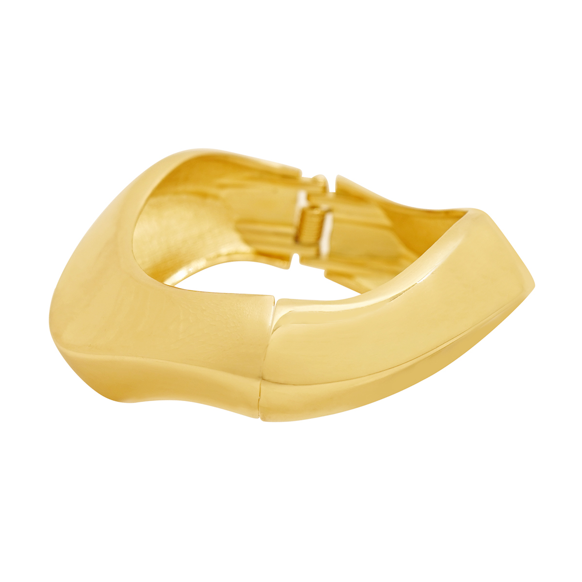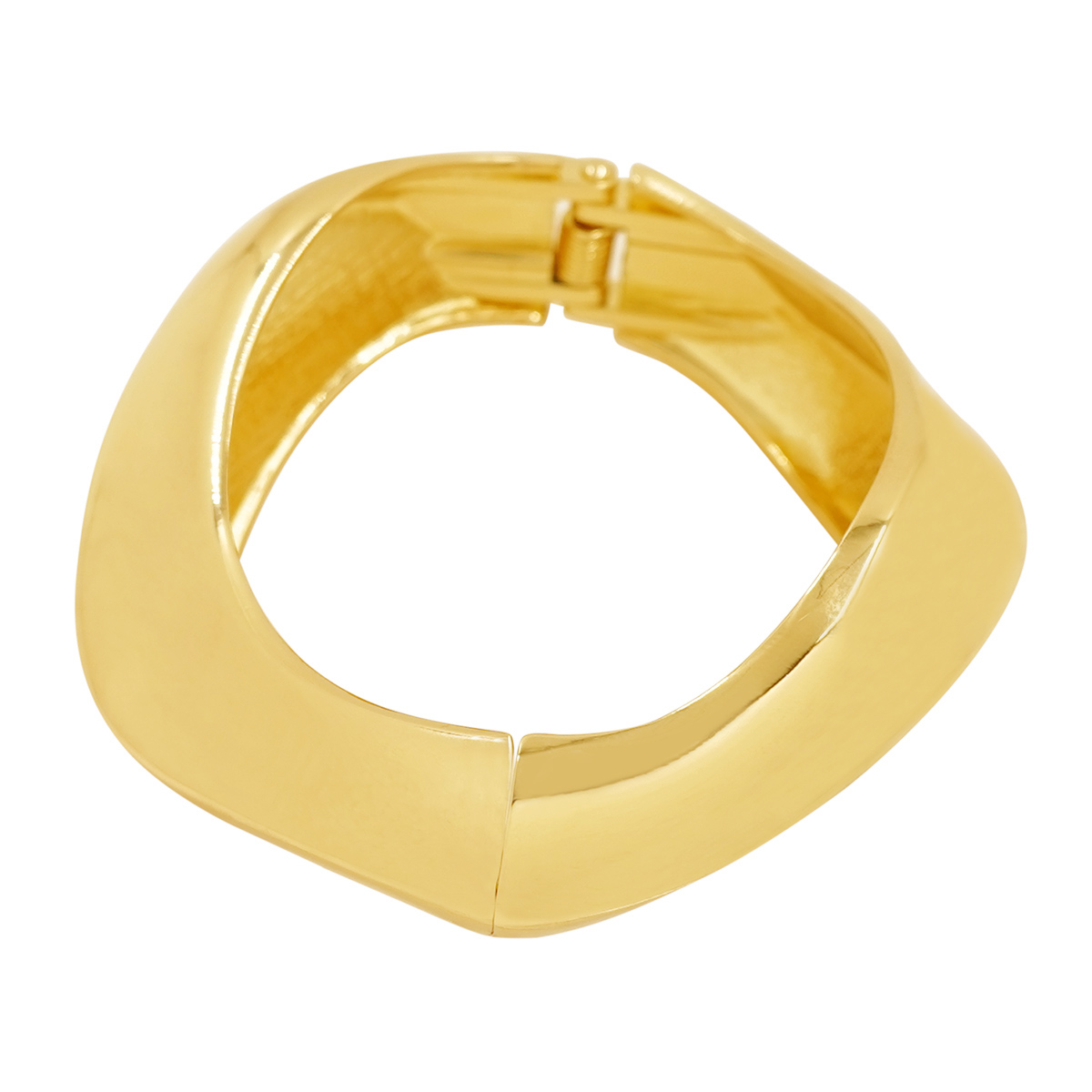DESCRIPTION - Enhance your style with this elegant gold-tone geometric bracelet, designed exclusively for women who love modern and minimal fashion. The unique angular shape and smooth glossy finish give it a luxurious appeal, while the durable gold-tone plating ensures lasting shine and comfort. Perfect for adding a touch of sophistication to both casual and party looks.