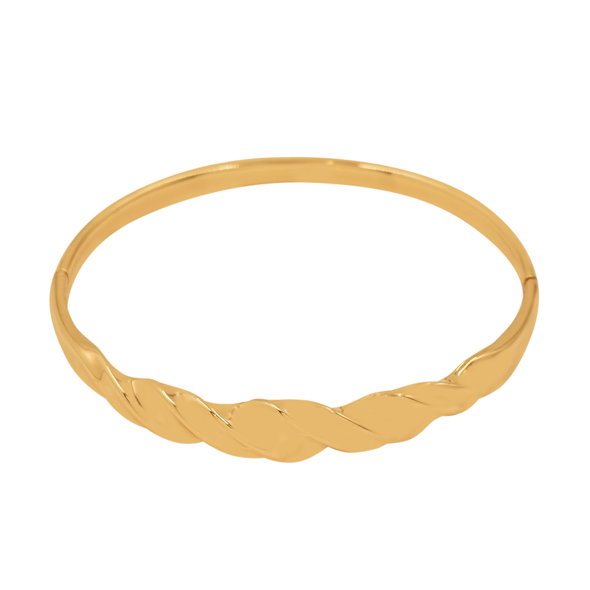 DESCRIPTION - Add a hint of sophistication to your style with this twisted gold-tone bangle. The sleek, lightweight design and delicate twist detail make it a perfect choice for women who love simple yet classy jewelry. Its polished gold-tone finish brings a touch of luxury, ideal for both everyday wear and special occasions.