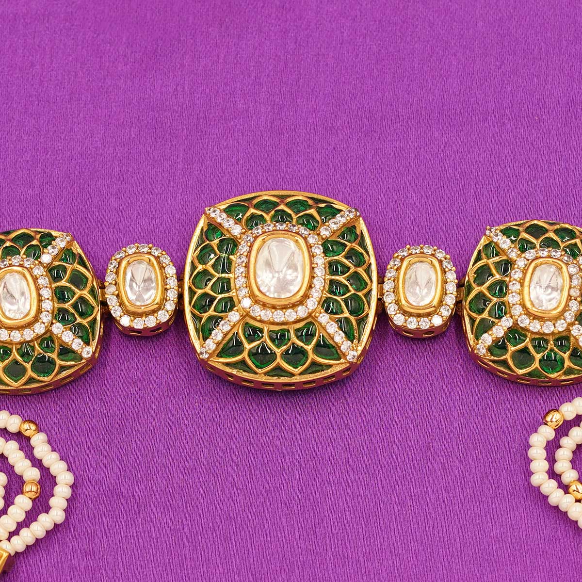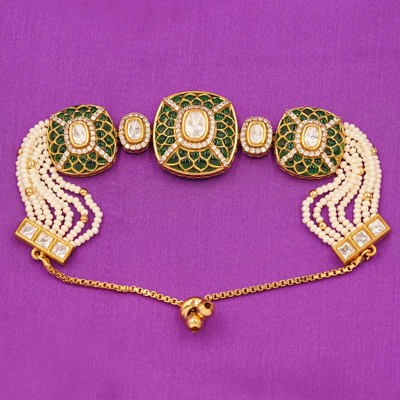 Bracelet - Emerald Green Kundan Bracelet with Pearl