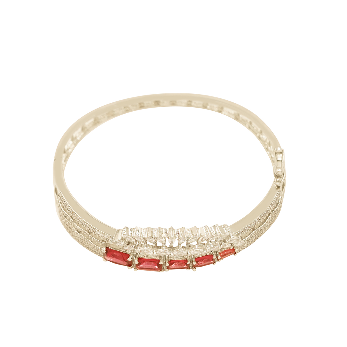 DESCRIPTION - THIS LUXURIOUS BRACELET FEATURES A STUNNING COMBINATION OF RICH RUBY-RED STONES AND DAZZLING DIAMOND-STYLE CRYSTALS. THE MULTI-LINE GOLD FRAME GIVES IT STRENGTH AND ELEGANCE, MAKING IT AN IDEAL CHOICE FOR WEDDINGS, RECEPTIONS, AND HIGH-END FESTIVE WEAR.