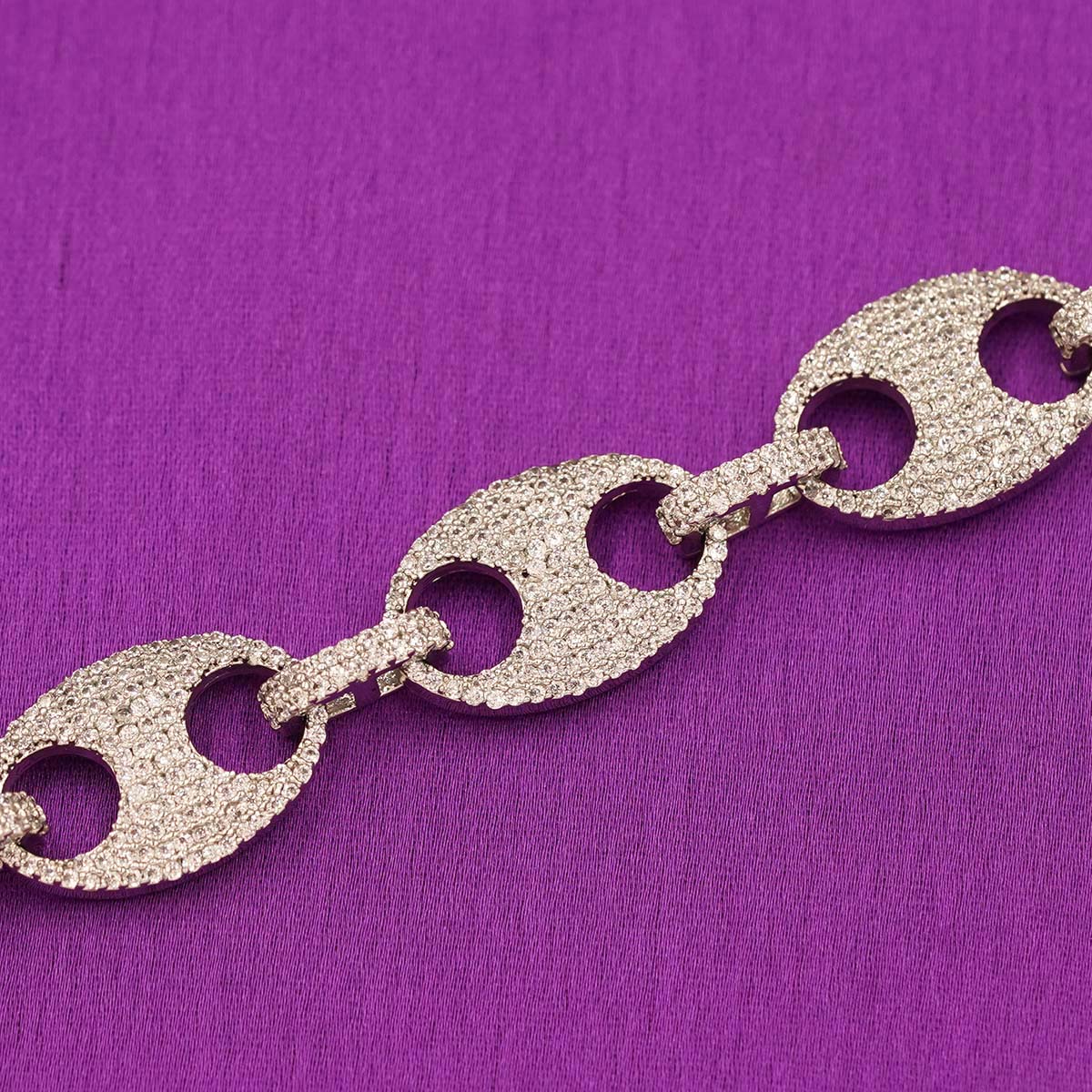 DESCRIPTION - This stunning bracelet features a bold chain-link design crafted with shimmering circular motifs, each fully embellished with fine, sparkling stones. The interconnected links create a stylish and modern look, making it a standout accessory for parties, functions, and everyday glamour.
