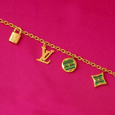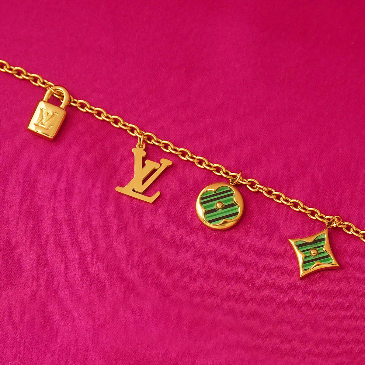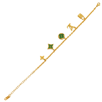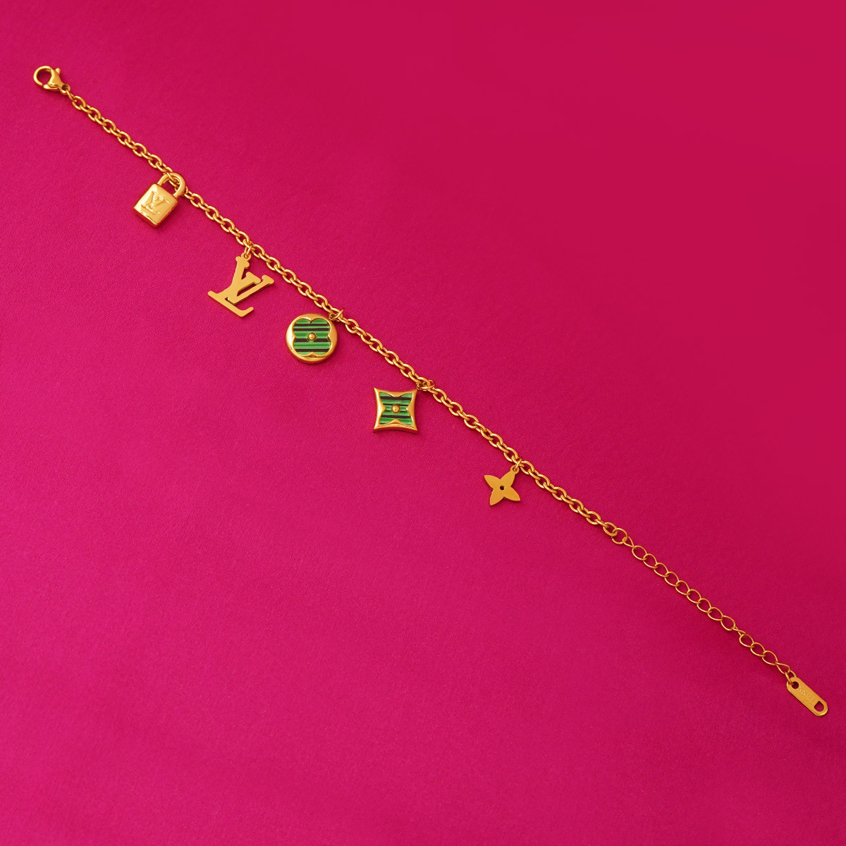Bracelet - Trendy Golden Bracelet with Green Enamel Charms