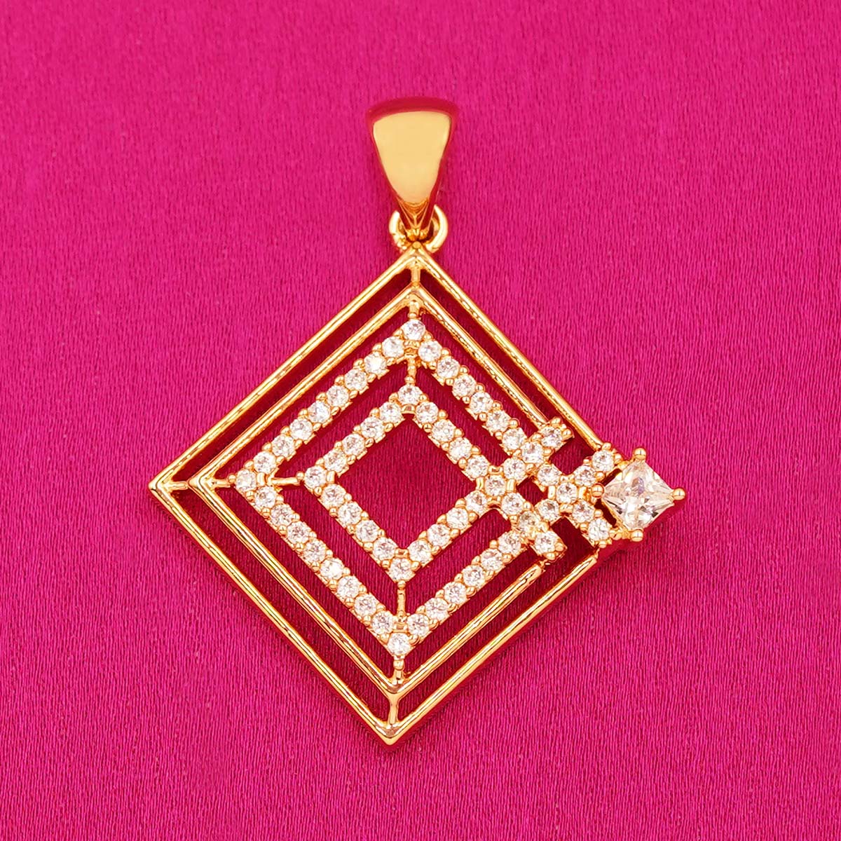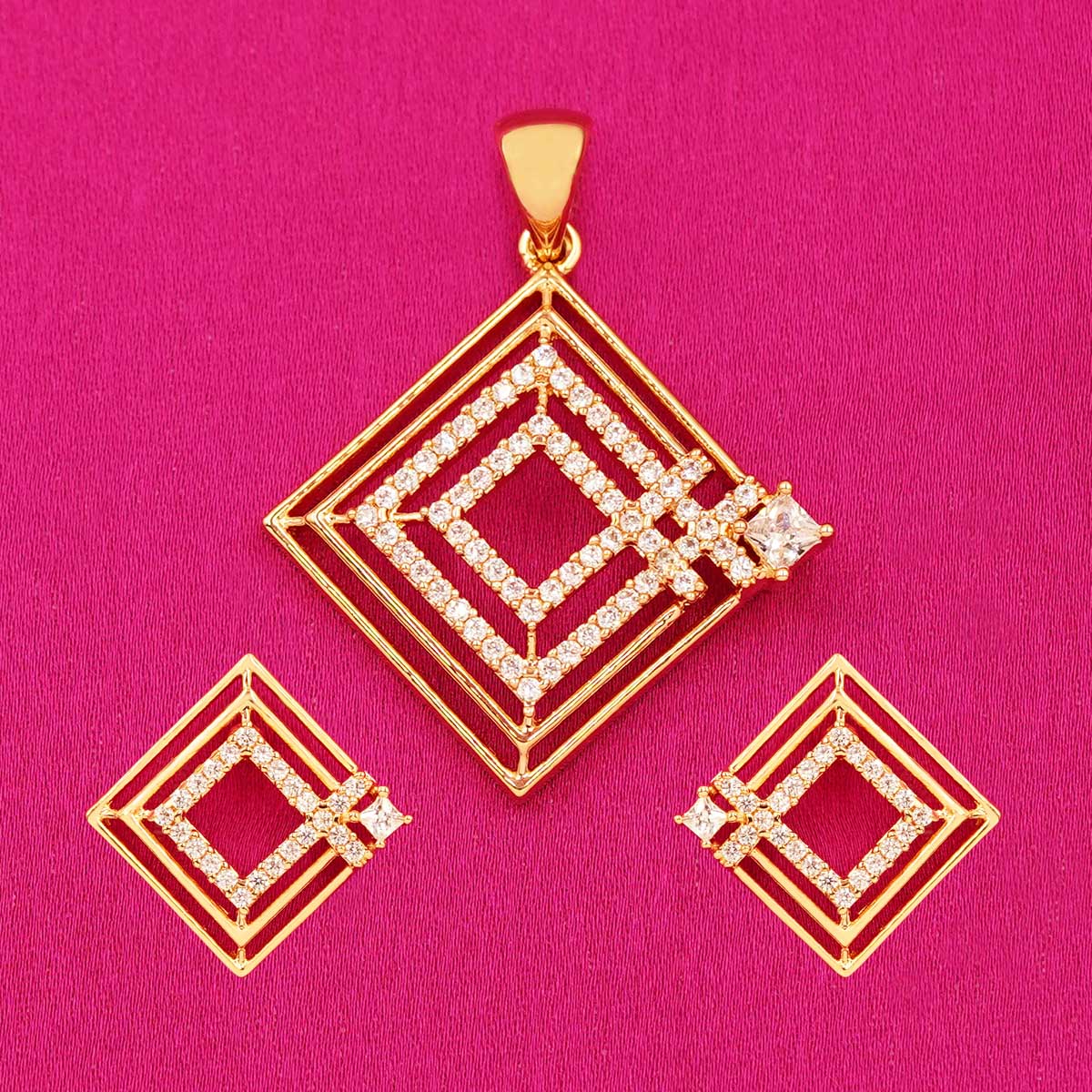 DESCRIPTION - This elegant pendant set showcases a layered diamond pattern embellished with shimmering stones and a central crystal accent. A stylish choice for both everyday elegance and special occasions.