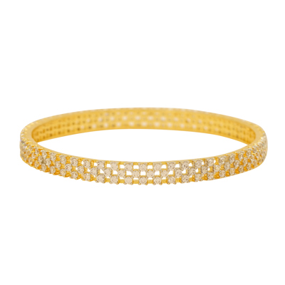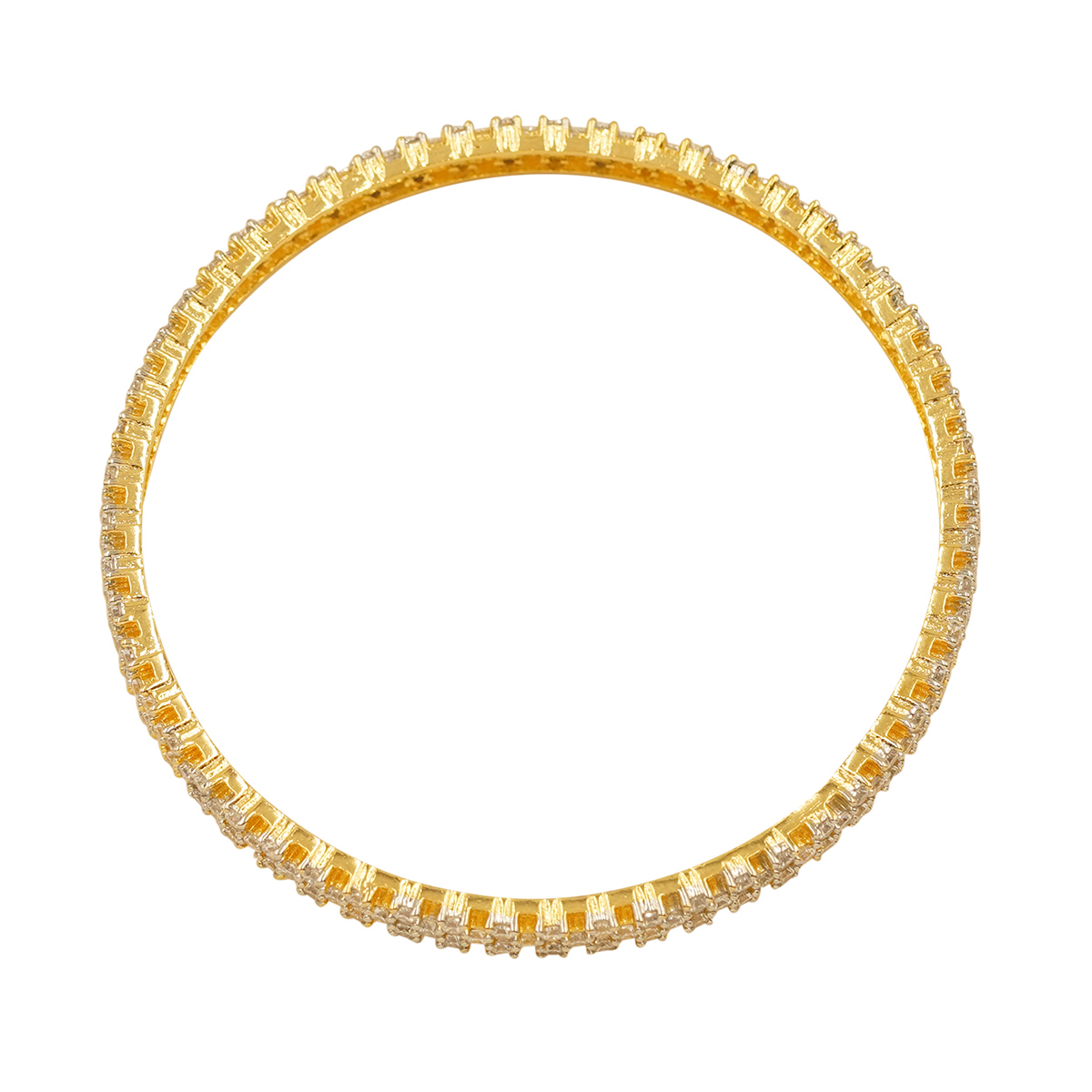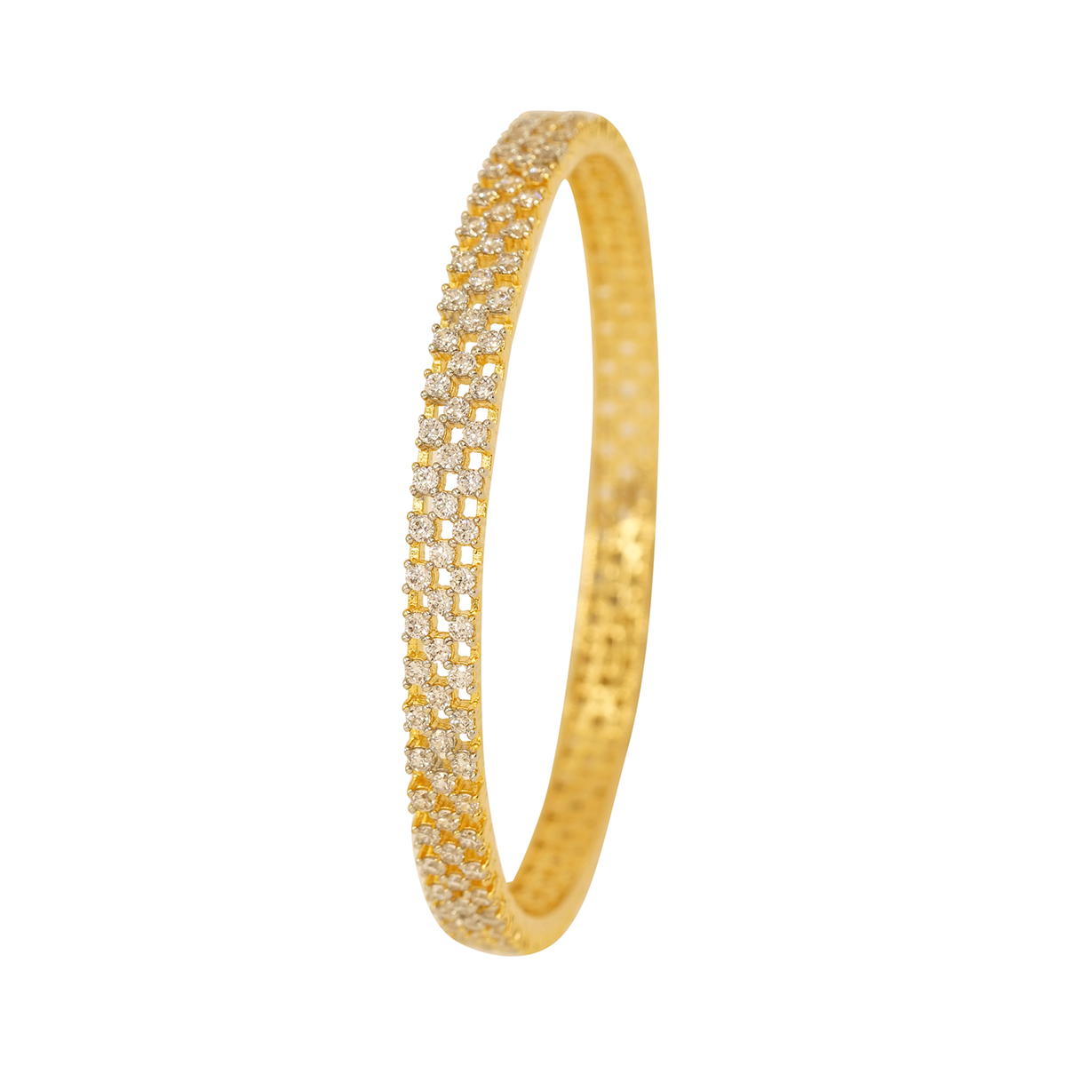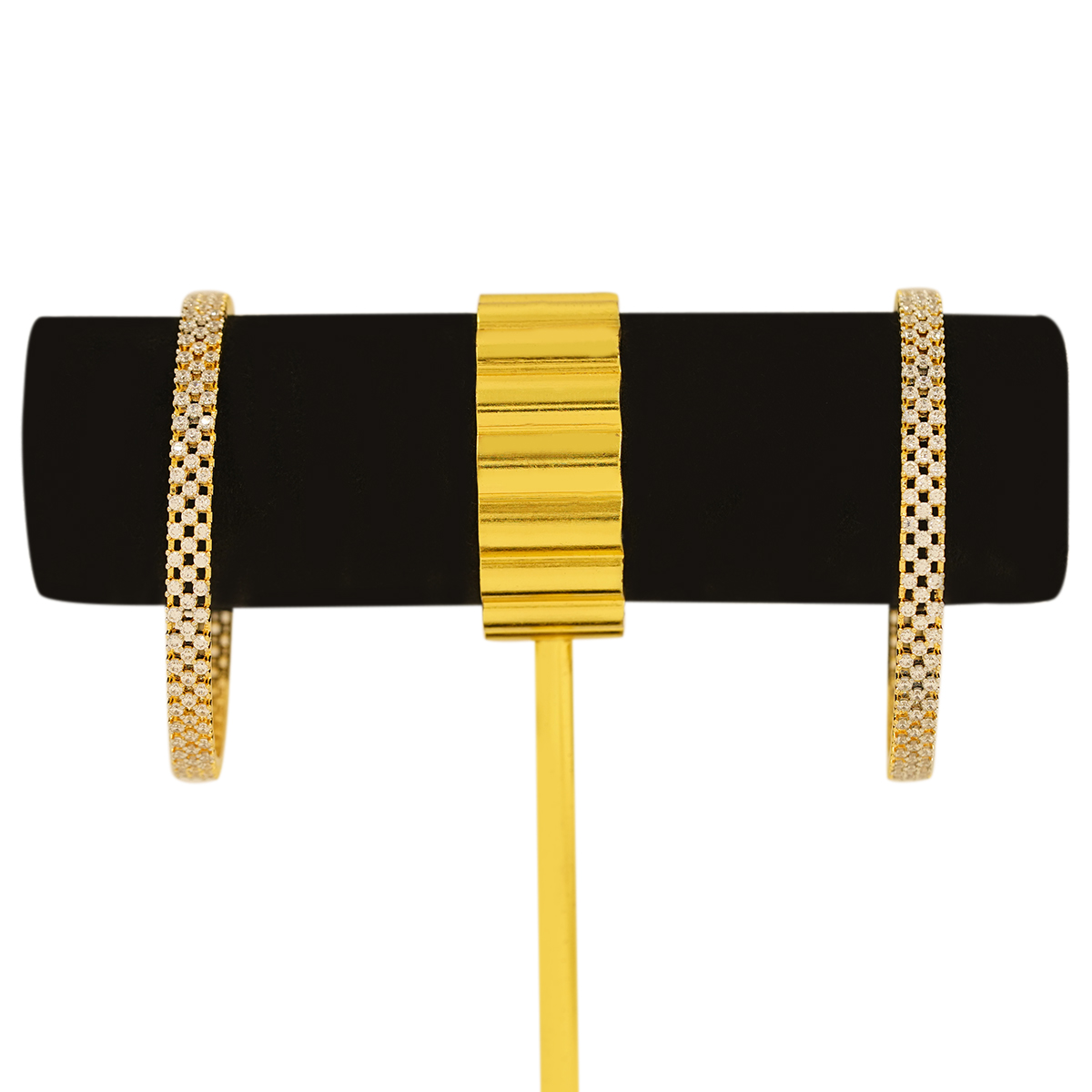 DESCRIPTION - THESE ELEGANT GOLD TONE BANGLES FEATURE A REFINED DIAMOND-CUT CHECKERED PATTERN THAT ADDS A SUBTLE SHIMMER WITH EVERY MOVEMENT. THE CLEAN, MINIMALIST DESIGN OFFERS A TIMELESS CHARM, MAKING THEM PERFECT FOR BOTH DAILY WEAR AND SPECIAL OCCASIONS. IDEAL FOR WOMEN WHO PREFER CLASSY AND VERSATILE JEWELLERY THAT COMPLEMENTS ANY OUTFIT EFFORTLESSLY.