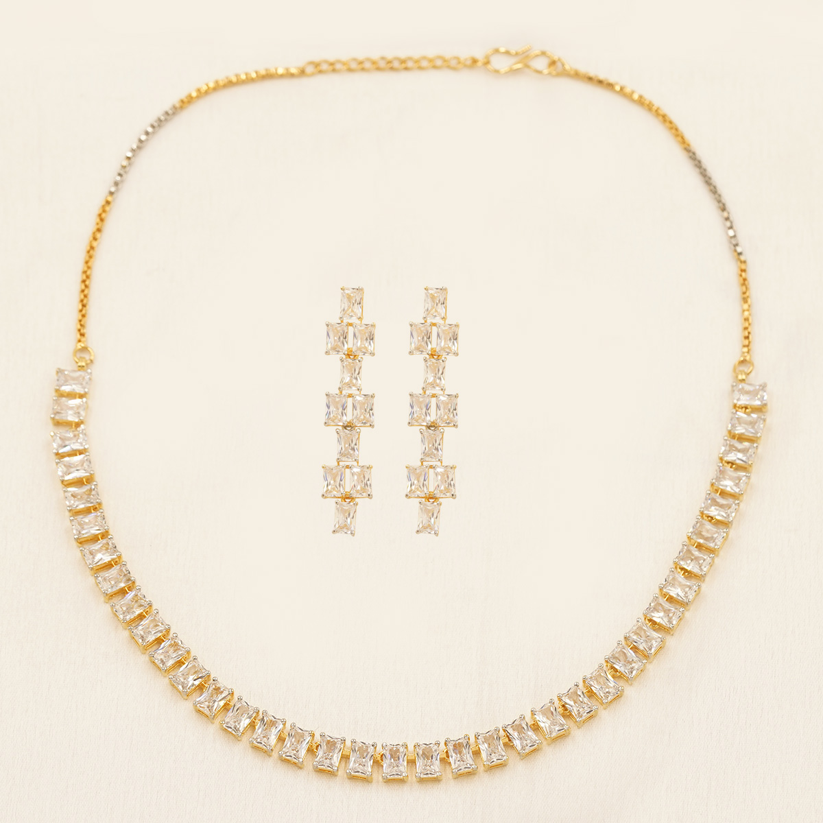 DESCRIPTION - ELEVATE YOUR EVERYDAY ELEGANCE WITH THIS CLASSIC GOLD TONE NECKLACE SET, DESIGNED FOR TIMELESS APPEAL. FEATURING A SLEEK, UNIFORMLY CRAFTED GOLD TONE-FINISH NECKLACE PAIRED WITH MATCHING DROP EARRINGS, THIS SET OFFERS A REFINED BALANCE OF SIMPLICITY AND SOPHISTICATION. THE POLISHED LINKS CREATE A GRACEFUL SILHOUETTE THAT COMPLEMENTS BOTH TRADITIONAL AND CONTEMPORARY OUTFITS—PERFECT FOR DAILY WEAR, FESTIVE OCCASIONS, OR OFFICE ELEGANCE. A VERSATILE ESSENTIAL THAT ADDS A SUBTLE GLOW TO EVERY LOOK.