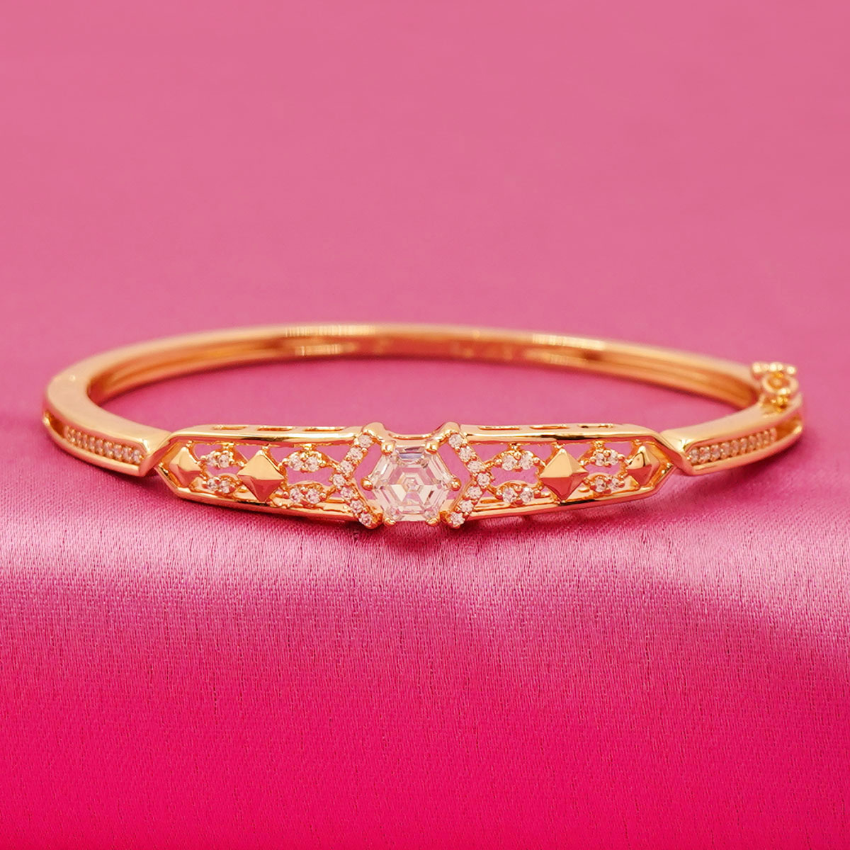 Classic Hexa-Cut Stone Bracelet with Intricate Filigree Design