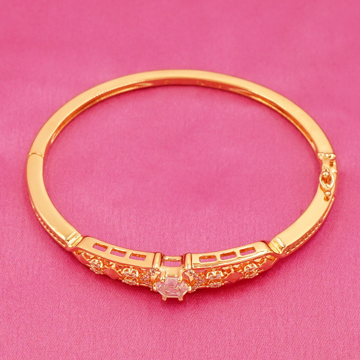 DESCRIPTION - This elegant bracelet features a beautiful hexagon-cut center stone surrounded by a delicate filigree pattern, giving it a rich and timeless appeal. The gold-toned finish enhances its luxurious look, while the geometric centerpiece adds a touch of modern sophistication.