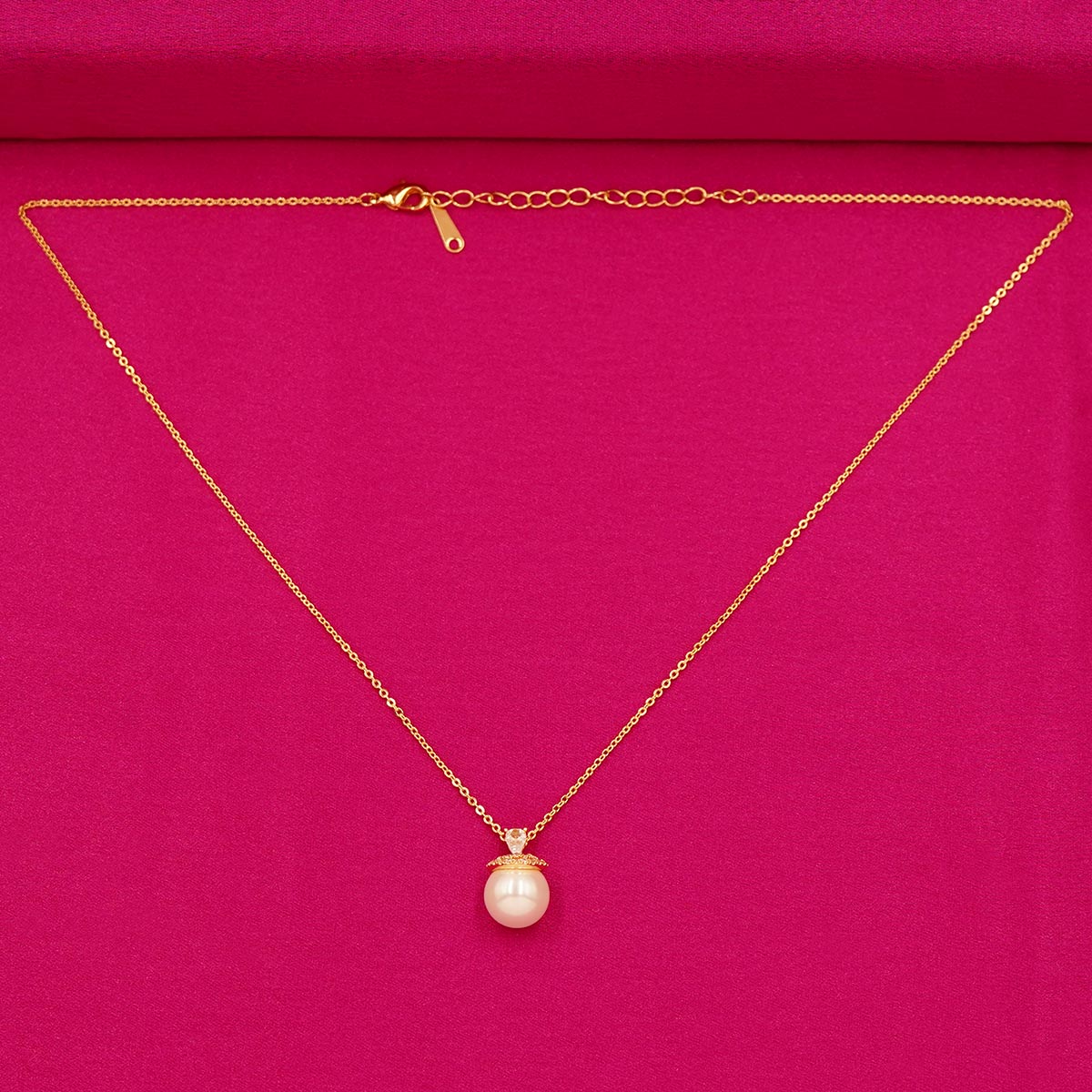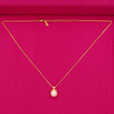 DESCRIPTION - This refined pearl jewelry set features a single lustrous pearl pendant on a delicate gold-tone chain, paired with matching stud earrings. The pearl's elegance is elevated by the minimalistic gold-toned setting, offering a timeless appeal. While not made from gold or silver, this set captures the essence of luxury with its polished finish and classic beauty.