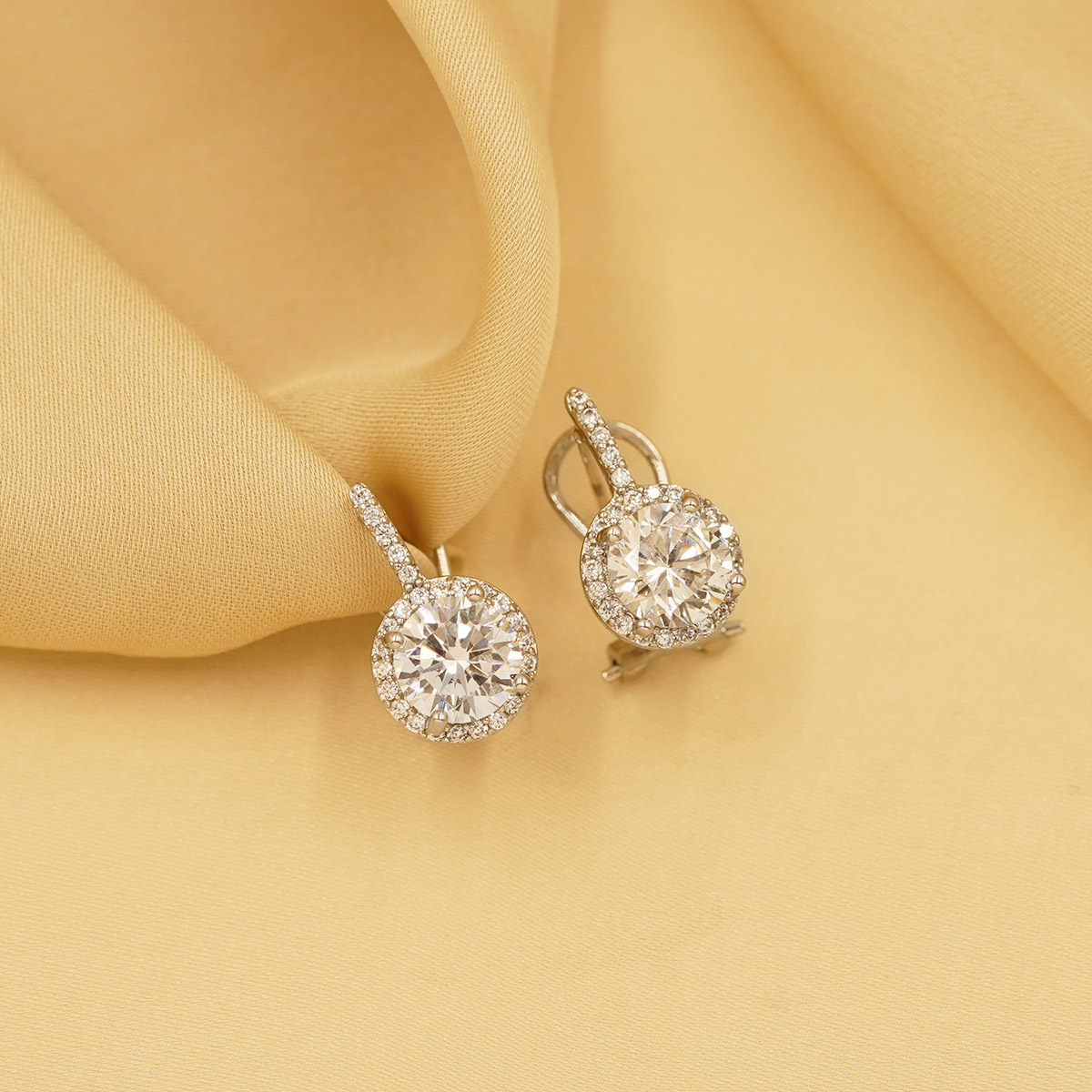 DESCRIPTION - CLASSIC ZIRCONIA CRYSTAL STUD EARRINGS. FEATURING A BRILLIANT ROUND-CUT CRYSTAL SET IN A SLEEK SILVER-TONED FRAME, THESE EARRINGS OFFER SUBTLE SPARKLE THAT COMPLEMENTS BOTH EVERYDAY OUTFITS AND SPECIAL OCCASIONS. LIGHTWEIGHT AND COMFORTABLE, THEY ARE PERFECT FOR LONG WEAR WHILE MAINTAINING A REFINED, SOPHISTICATED APPEAL. A MUST-HAVE ACCESSORY FOR THOSE WHO LOVE MINIMAL YET GRACEFUL JEWELRY.