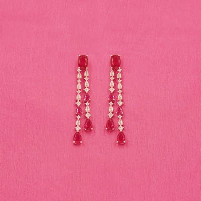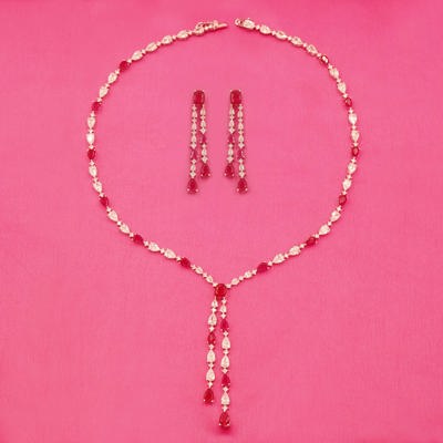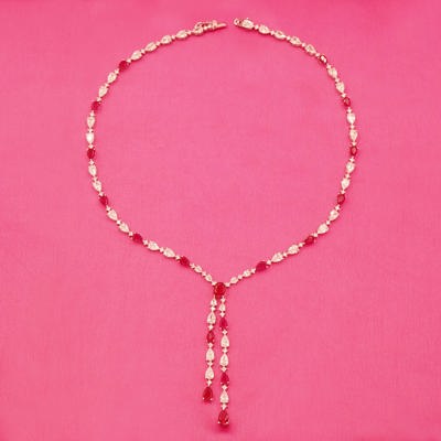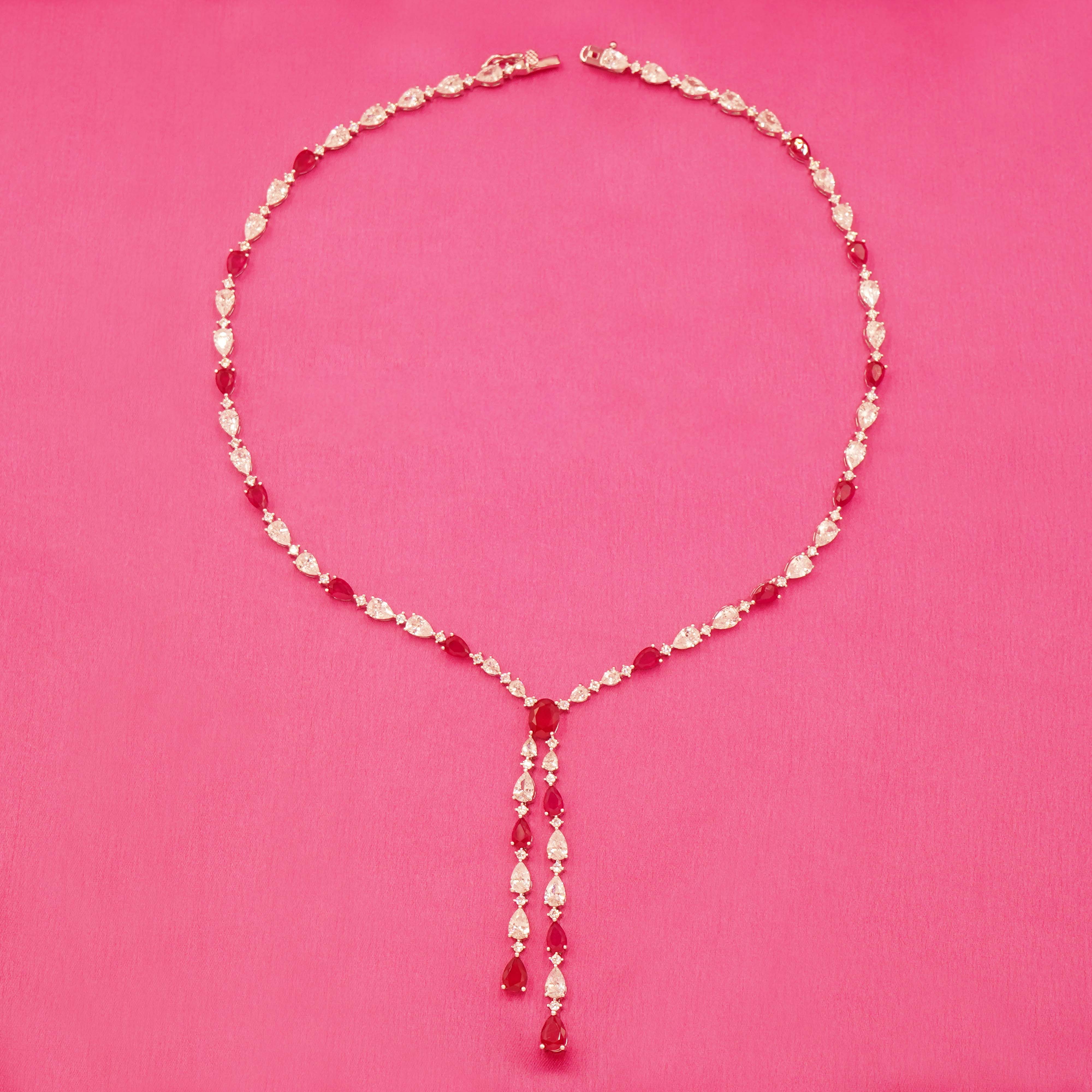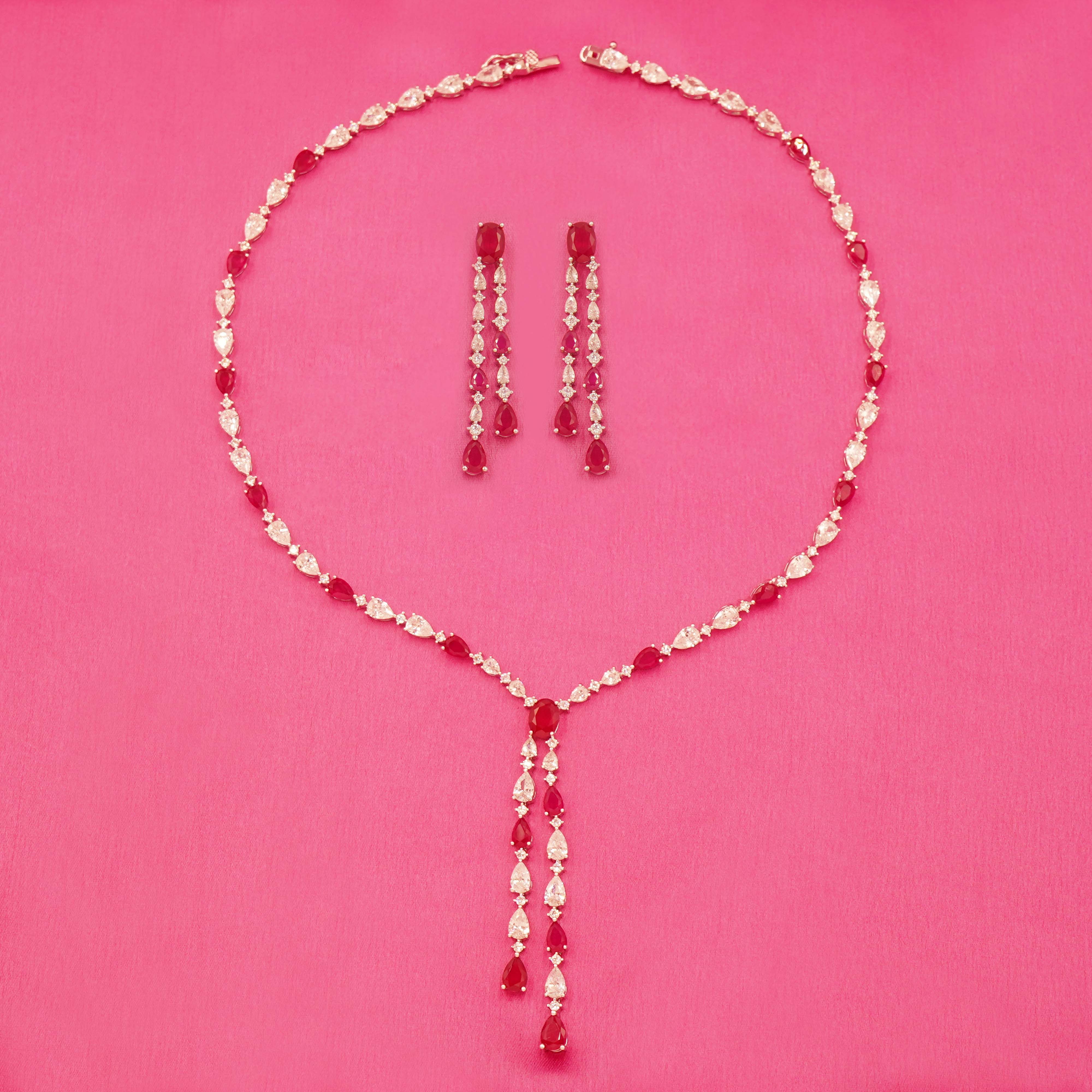 DESCRIPTION - This beautiful necklace set is crafted from high-quality brass and embellished with sparkling red and white stones. Paired with matching long earrings, this set is perfect for weddings, parties, and special occasions. A stylish choice to enhance your festive look.