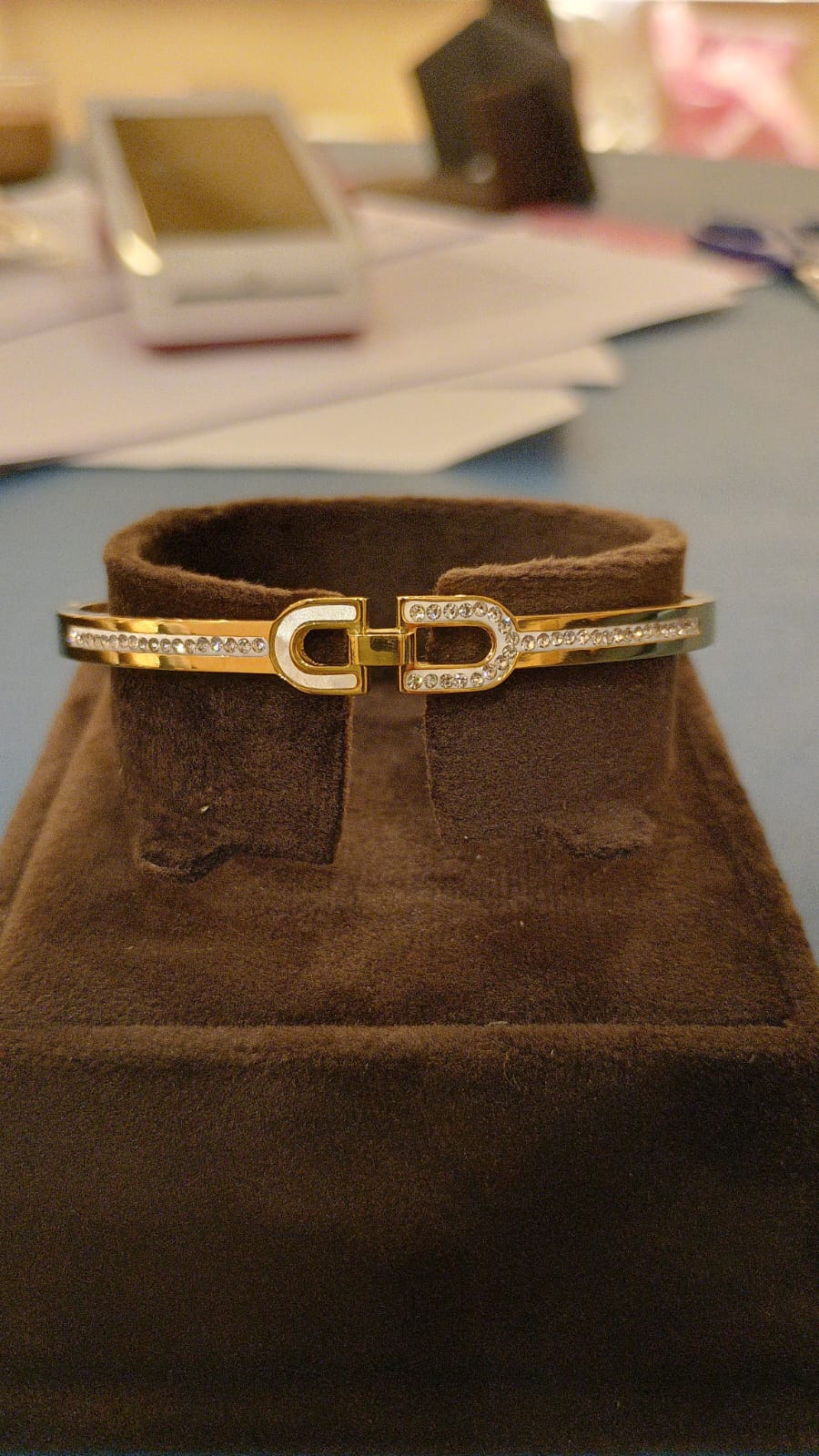 DESCRIPTION - This stylish bracelet features a sleek dual buckle centerpiece, beautifully enhanced with sparkling crystal stones for a refined and modern look. perfect for daily wear, office outfits, parties, and gifting. Lightweight, classy, and effortlessly fashionable, this bracelet adds a touch of elegance to any outfit.