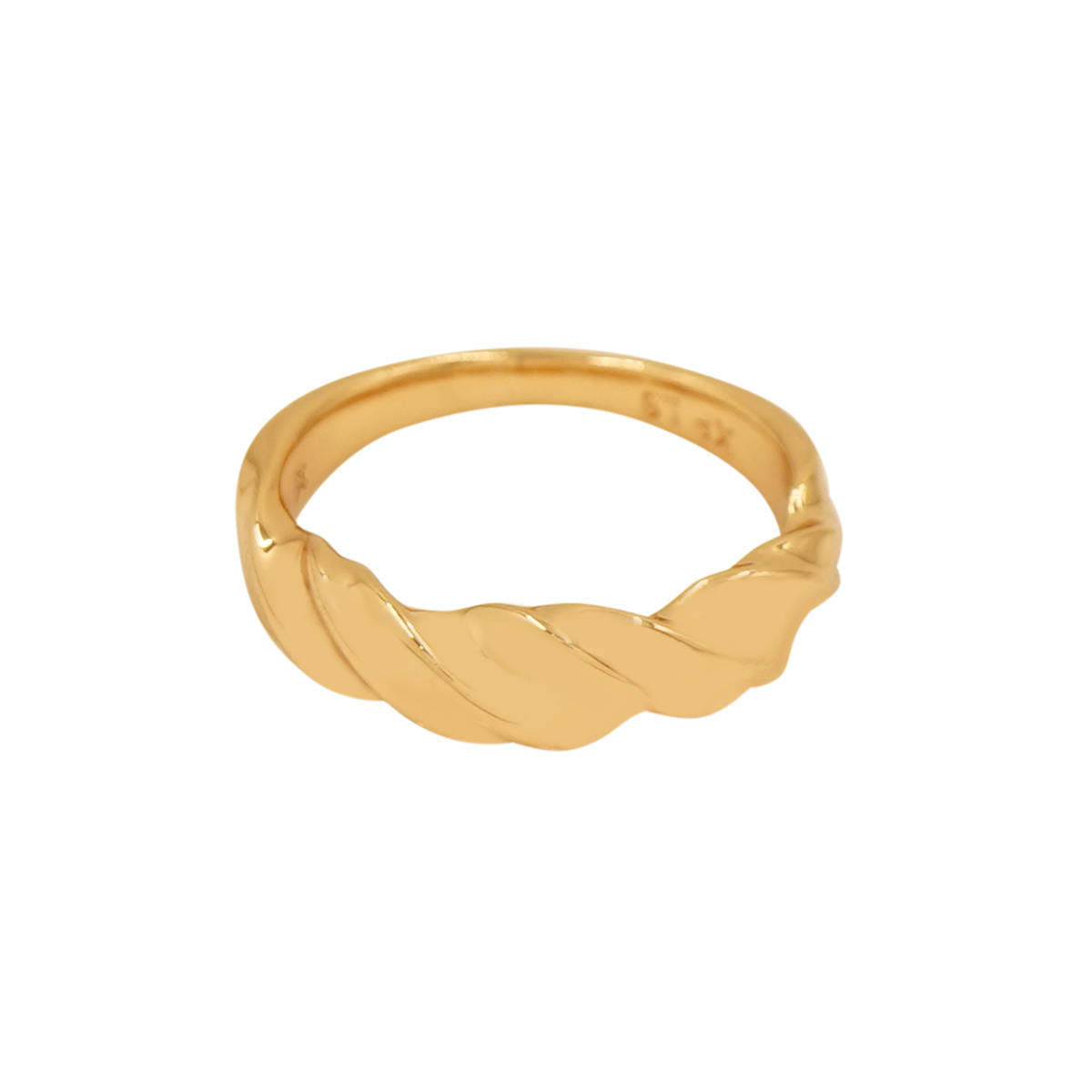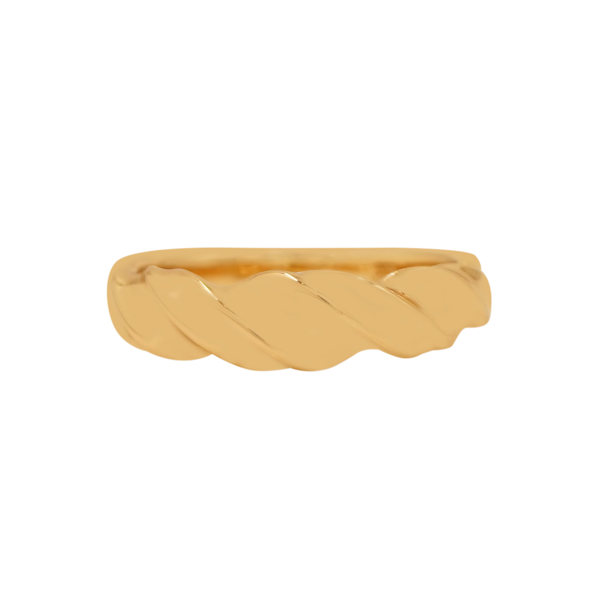 DESCRIPTION - This minimal and stylish golden band features a smooth twisted design that adds a touch of sophistication. Perfect for daily wear or stacking with other rings, it offers a classy and timeless look. Its sleek finish makes it suitable for both casual and festive outfits.