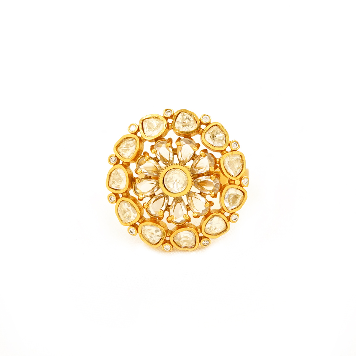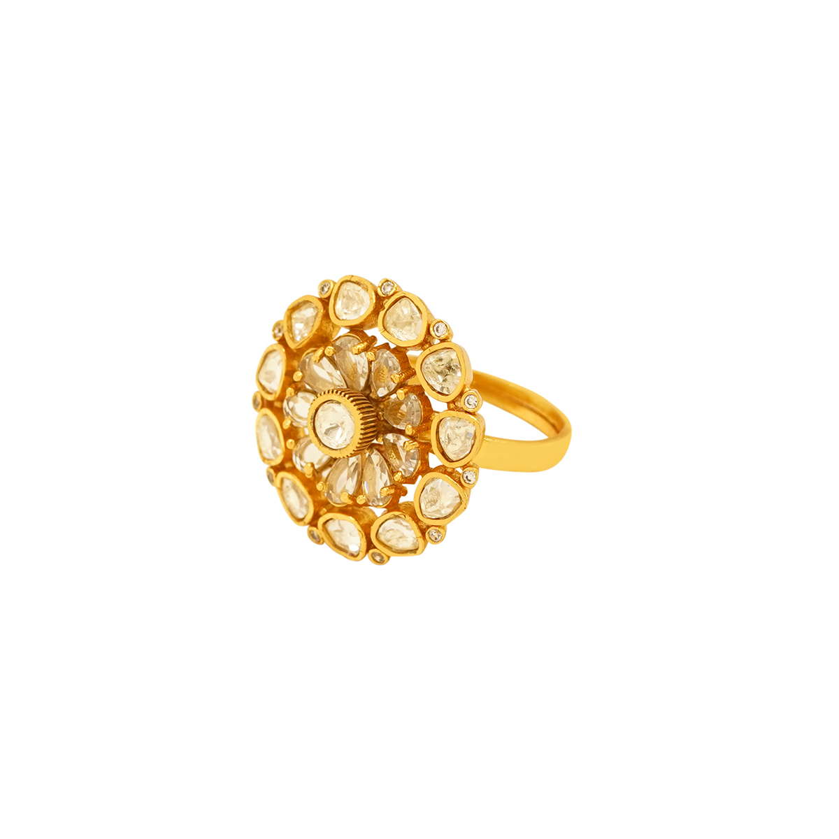 Gold-Tone Kundan Stud Earring (Classic Circular Design)