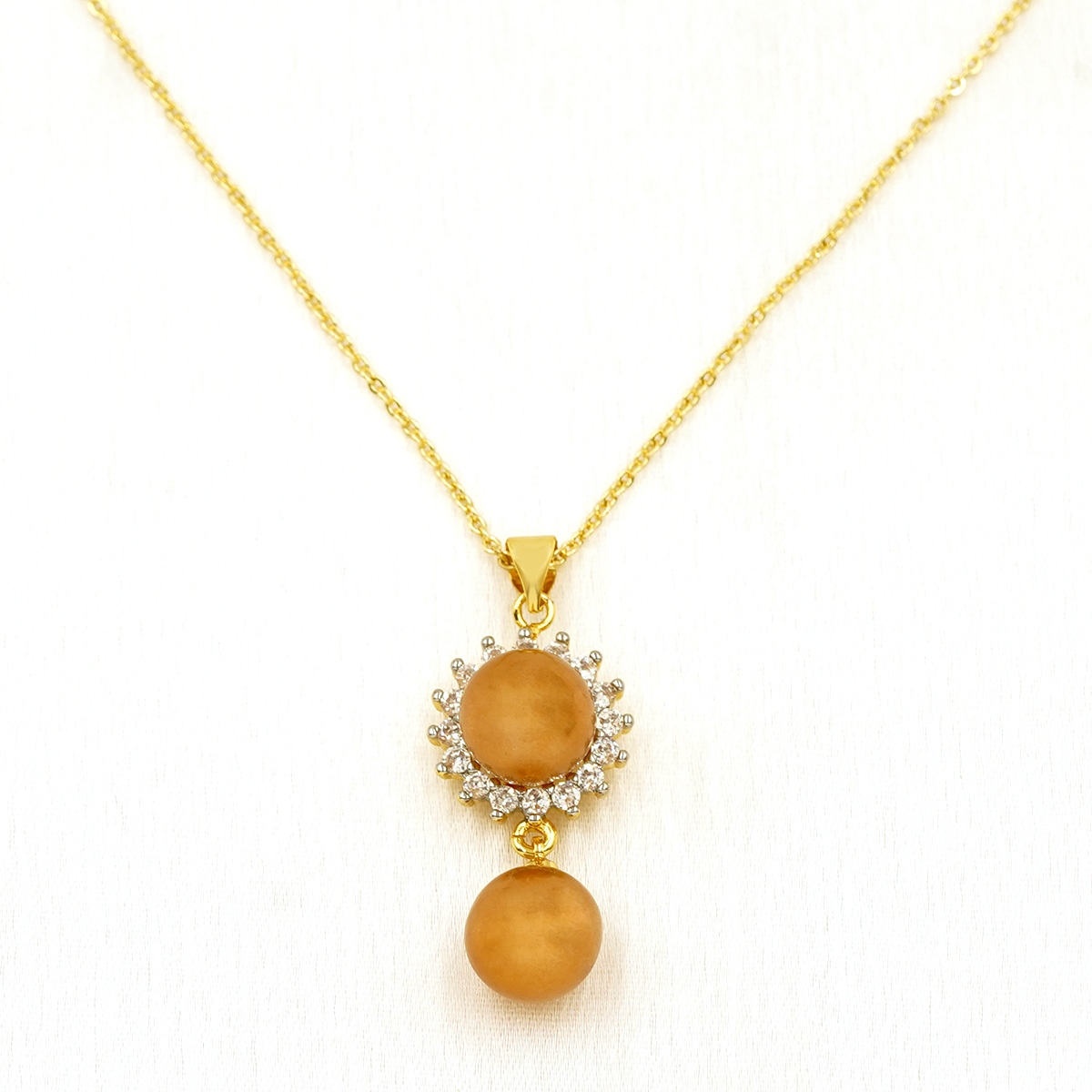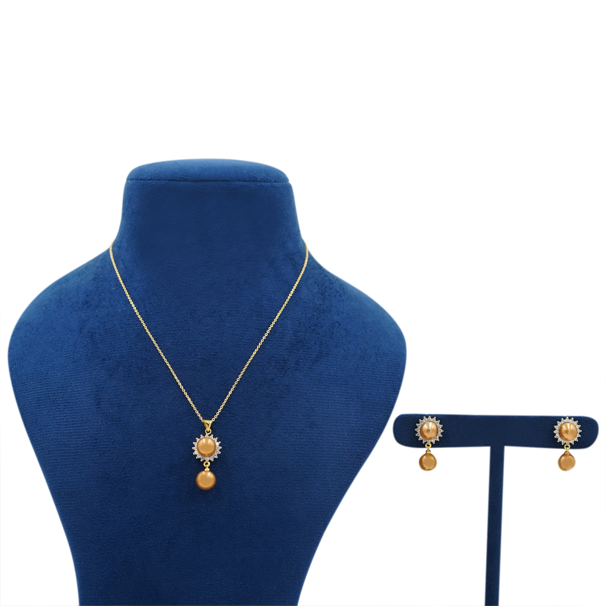 DESCRIPTION - RADIATING TIMELESS ELEGANCE, THIS EXQUISITE GOLD-TONED PENDANT AND EARRING SET FEATURES A GRACEFUL SUNBURST MOTIF CROWNED WITH LUMINOUS PEARL DROPS. THE DELICATE CHAIN AND MATCHING STUD EARRINGS CREATE A HARMONIOUS BLEND OF TRADITION AND SOPHISTICATION, MAKING IT PERFECT FOR FESTIVE OCCASIONS, WEDDINGS, OR REFINED EVERYDAY WEAR. A CLASSIC DESIGN THAT ADDS A SOFT GLOW AND REGAL CHARM TO ANY ENSEMBLE.