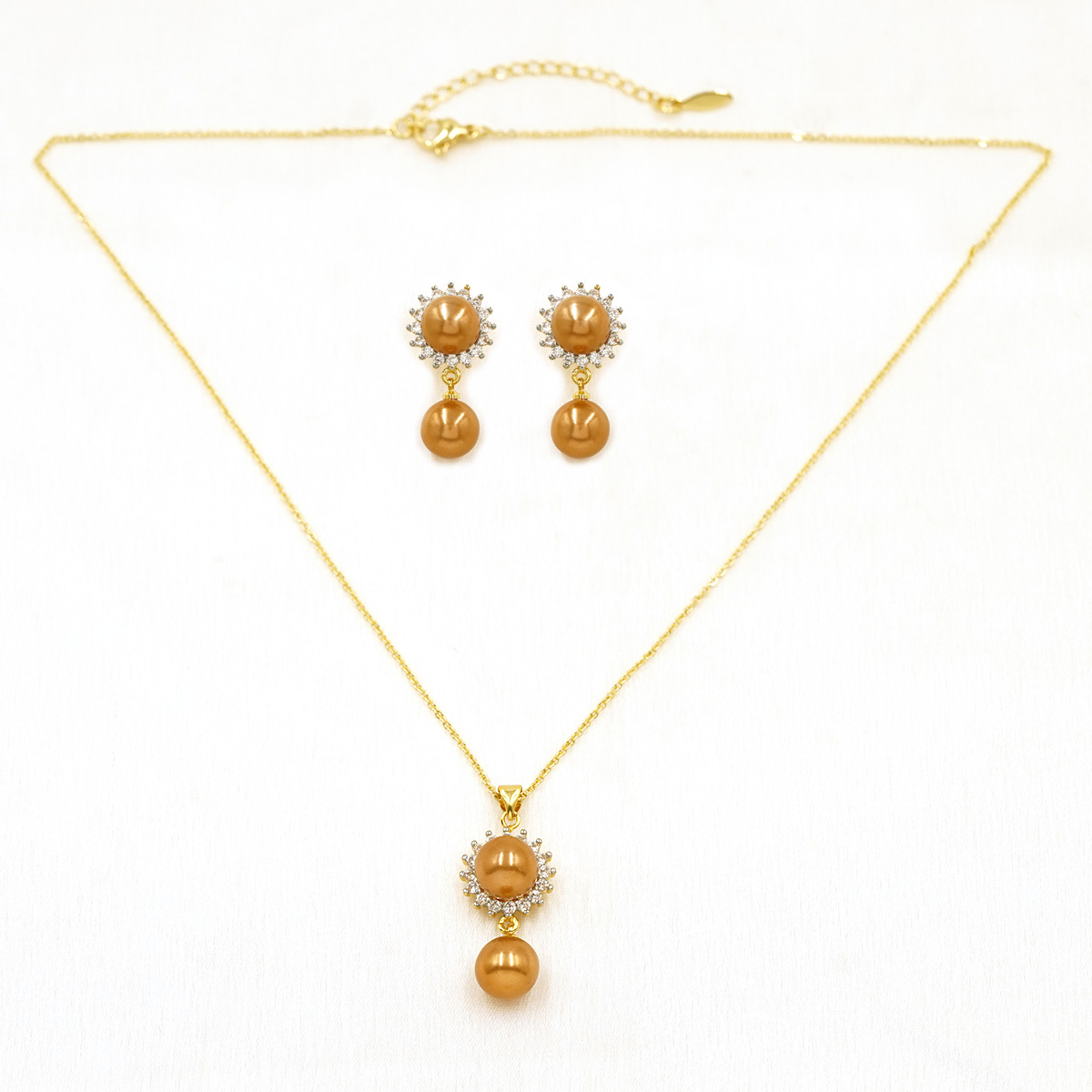 Golden Tone Sunburst Pearl Drop Pendant & Earrings Set