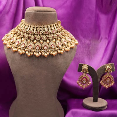 Gulabi Ghoomar Necklace Set : Maroon Choker with Jaipur's Royal Touch