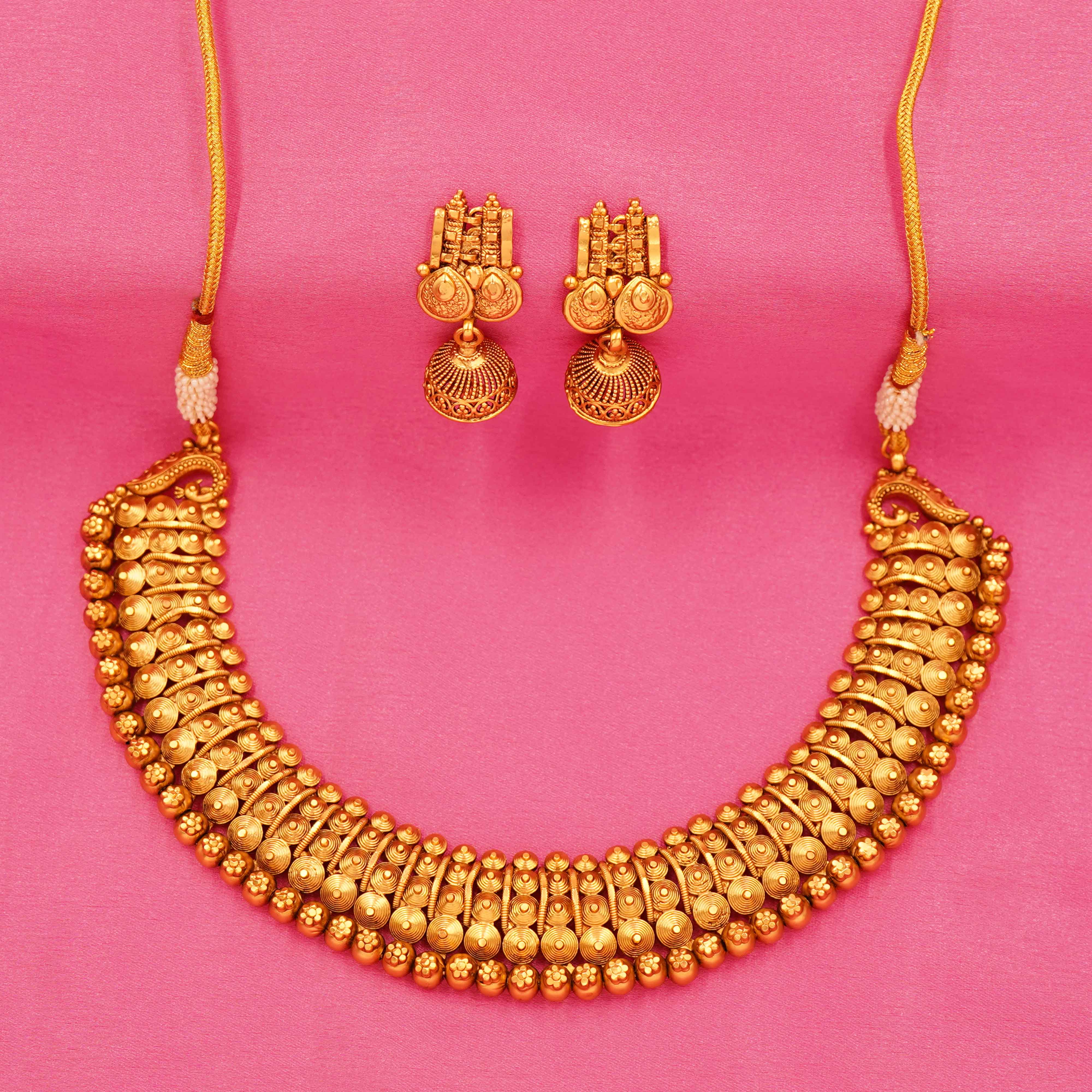 Kanaka Shobha – Traditional Gold-Tone Choker Necklace & Jhumka Set
