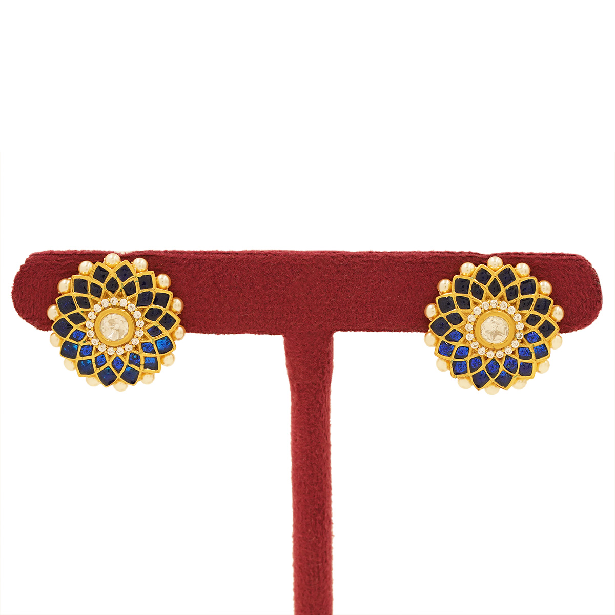 DESCRIPTION - ELEGANT GOLD-TONE FLORAL STUD EARRINGS WITH GREEN ACCENTS AND A RADIANT CENTER STONE. PERFECT FOR FESTIVE, WEDDING, AND EVERYDAY WEAR.