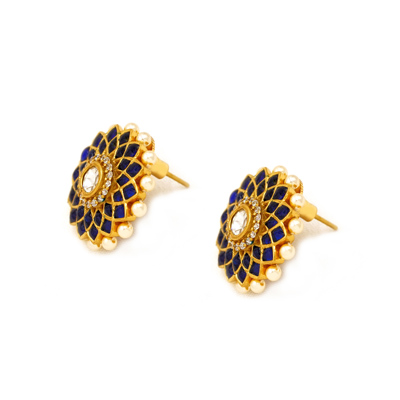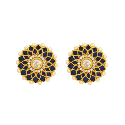 Midnight Bloom Gold Tone Stud Earrings