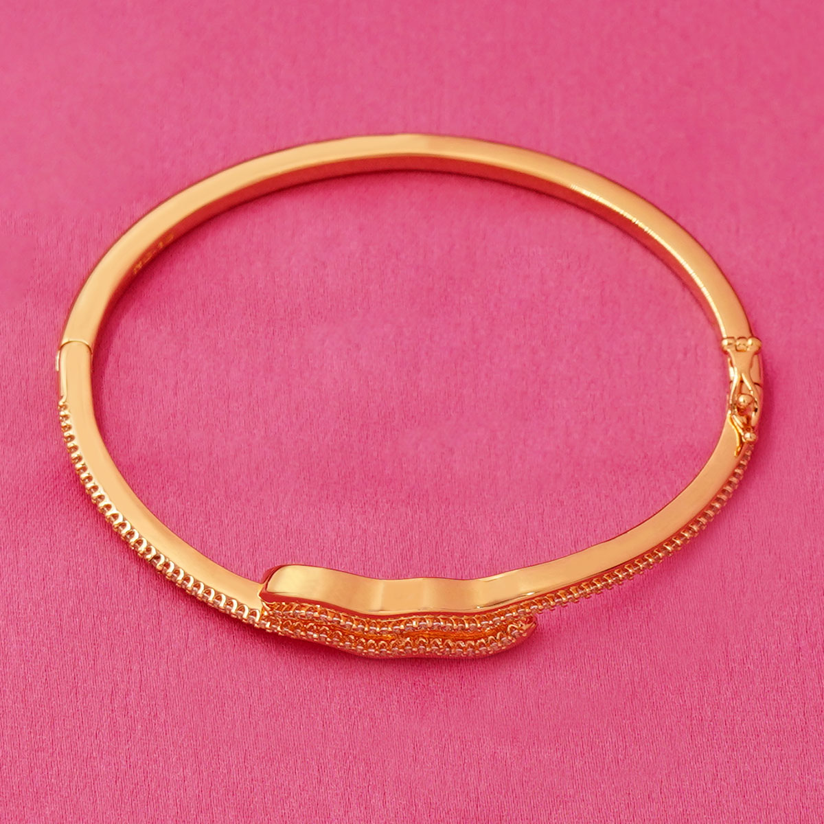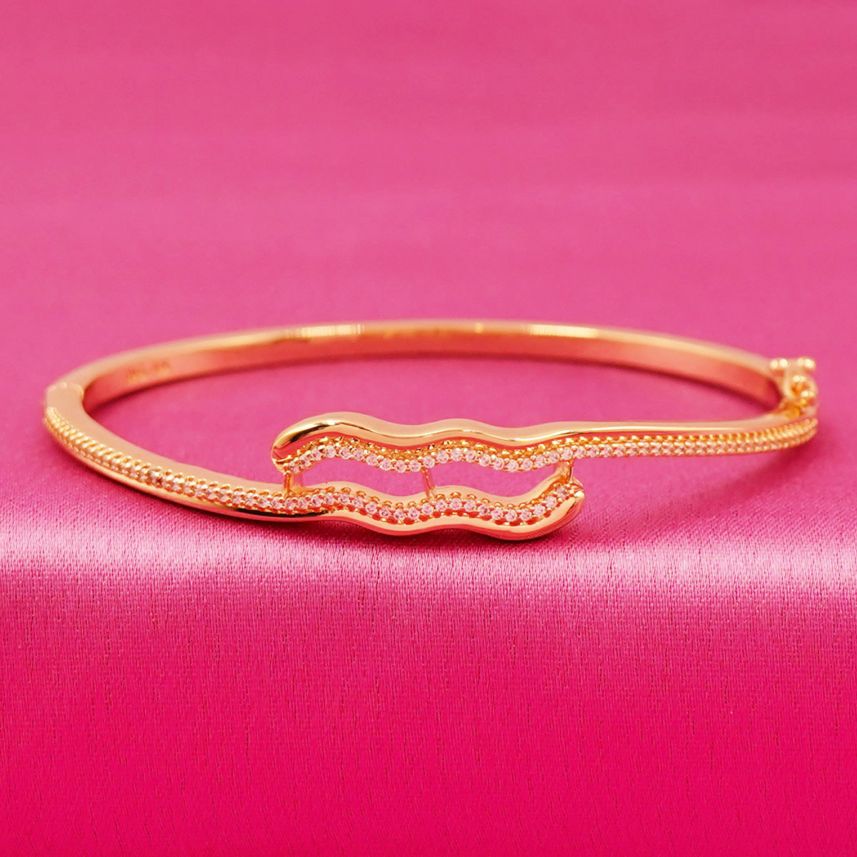 DESCRIPTION - This elegant bracelet features a sleek and minimal wave-shaped centerpiece, beautifully highlighted with fine crystal detailing. The slim gold-toned band adds a touch of sophistication, making it perfect for both everyday wear and special occasions.