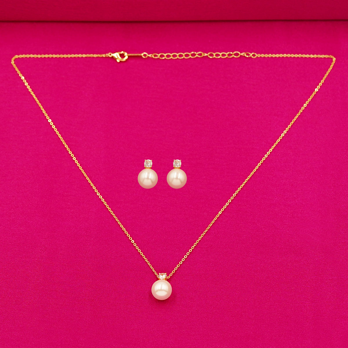 DESCRIPTION - Keep it classy with this minimalist pearl drop jewelry set, featuring a sleek gold-tone alloy chain and elegant matching earrings. perfectly mirrored in the drop-style earrings. Ideal for daily wear, formal gatherings, or gifting, this lightweight set offers timeless elegance with a modern touch — all without the cost of precious metals.