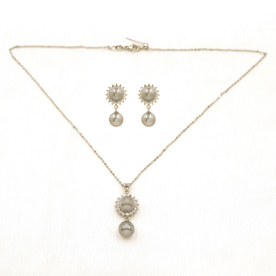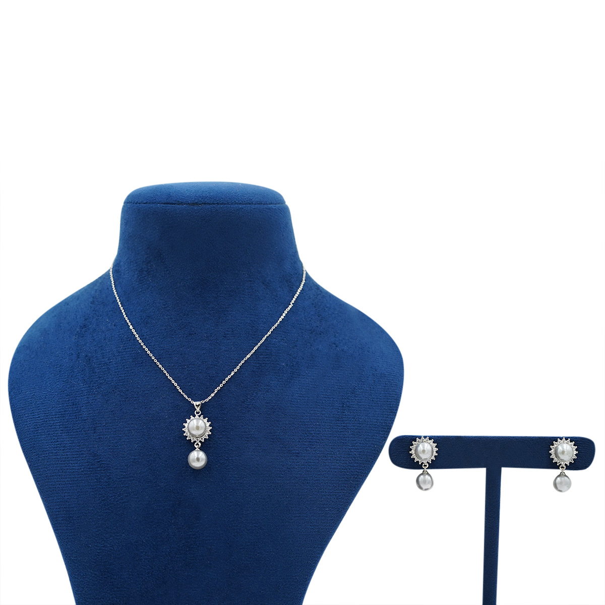 DESCRIPTION - GRACE MEETS TIMELESS BEAUTY IN THIS EXQUISITE NECKLACE AND EARRING SET, CRAFTED WITH A RADIANT FLORAL-INSPIRED DESIGN AND FINISHED WITH DELICATE PEARL DROPS. THE SHIMMERING SILVER-TONE SETTING HIGHLIGHTS THE SPARKLING CENTRAL STONES, CREATING A REFINED LOOK PERFECT FOR WEDDINGS, FESTIVE OCCASIONS, AND ELEGANT EVENING WEAR. LIGHTWEIGHT YET STRIKING, THIS COORDINATED SET ADDS A TOUCH OF SOPHISTICATION AND CHARM TO BOTH TRADITIONAL AND CONTEMPORARY OUTFITS.