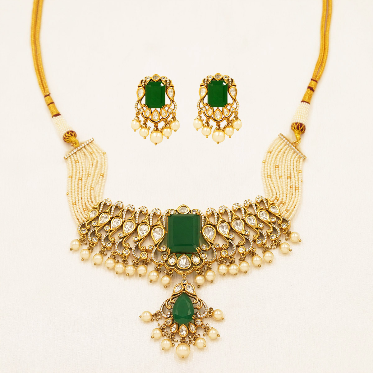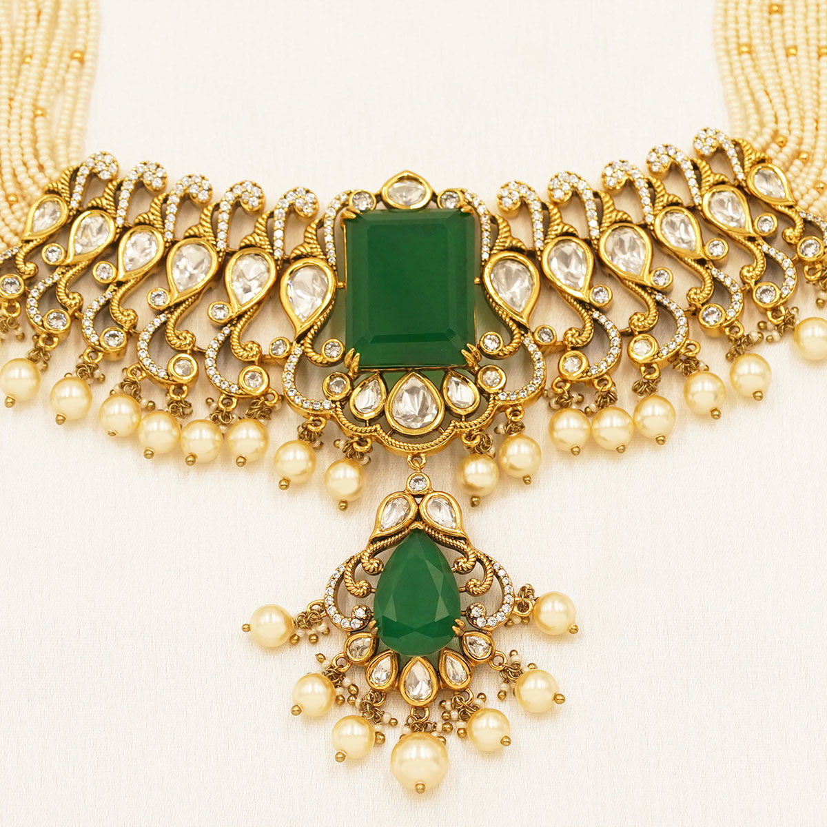 Royal Emerald Pearl Kundan Choker Set