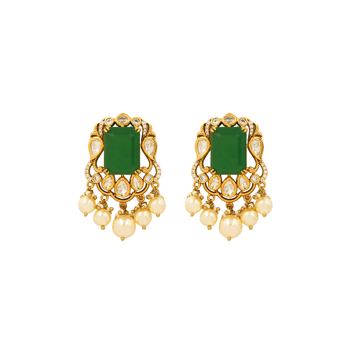 DESCRIPTION - Elevate your ethnic look with this exquisite Royal Emerald Pearl Kundan Choker Set. Featuring a beautifully crafted gold-toned choker adorned with radiant kundan stones, lustrous pearl drops, and striking emerald-green center stones, this set exudes timeless elegance. The intricate detailing and layered pearl design add a regal charm, while the matching statement earrings perfectly complement the choker for a complete traditional ensemble.