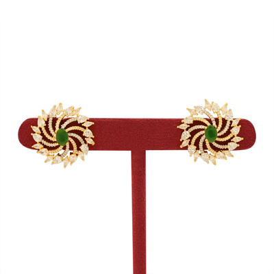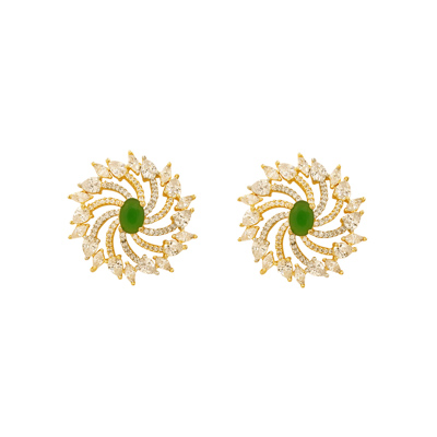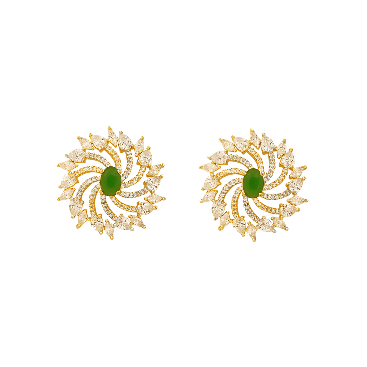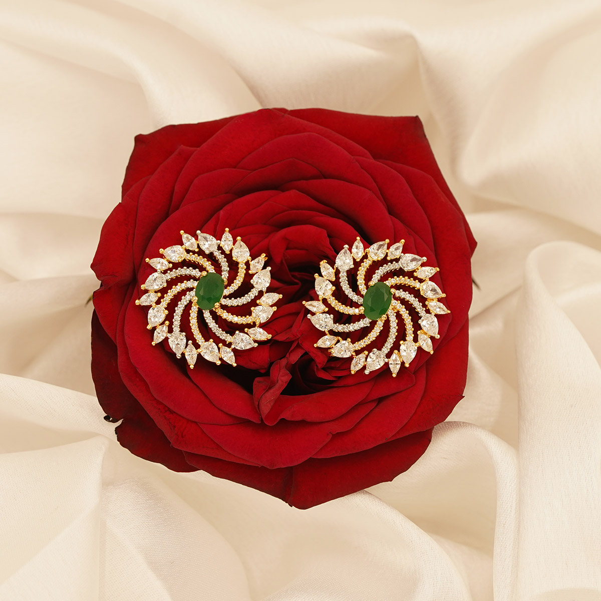 DESCRIPTION - ELEVATE YOUR LOOK WITH THESE STUNNING ROYAL EMERALD SWIRL KUNDAN EARRINGS, DESIGNED IN AN ELEGANT SPIRAL MOTIF THAT SYMBOLIZES TIMELESS GRACE. CRAFTED WITH SHIMMERING WHITE STONES AND ACCENTED BY A VIBRANT EMERALD-GREEN CENTER, THESE EARRINGS BEAUTIFULLY REFLECT TRADITIONAL CRAFTSMANSHIP WITH A MODERN TWIST. PERFECT FOR WEDDINGS, FESTIVE OCCASIONS, AND SPECIAL CELEBRATIONS, THEY ADD A TOUCH OF REGAL CHARM TO BOTH ETHNIC AND FUSION OUTFITS.