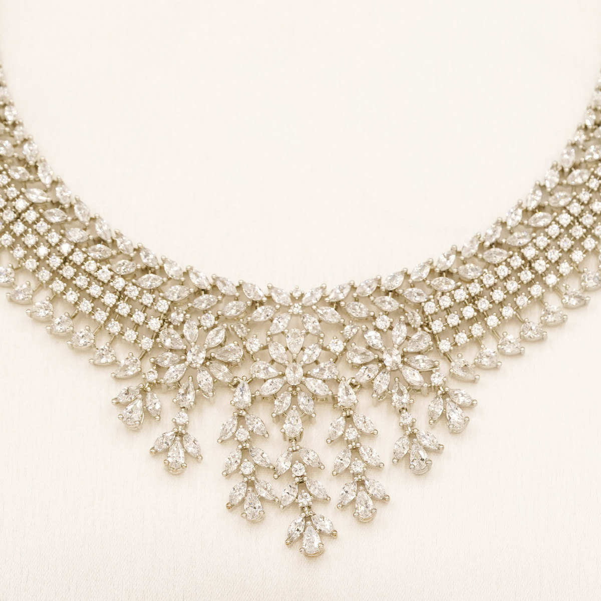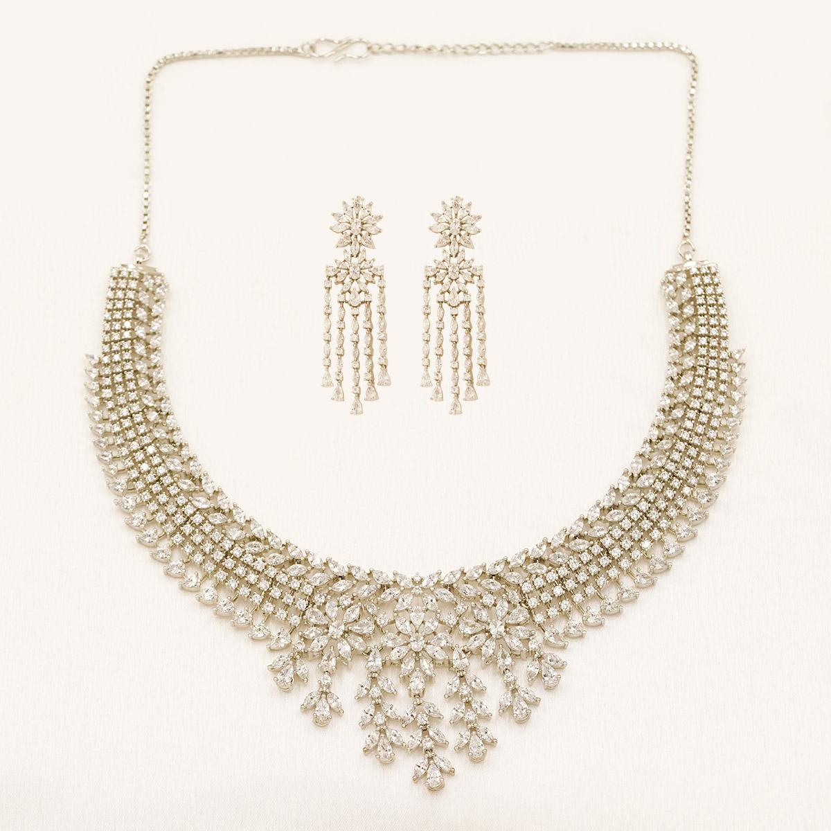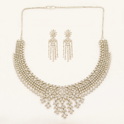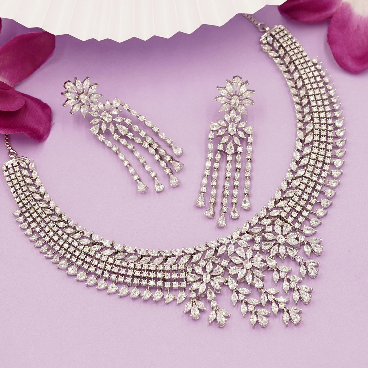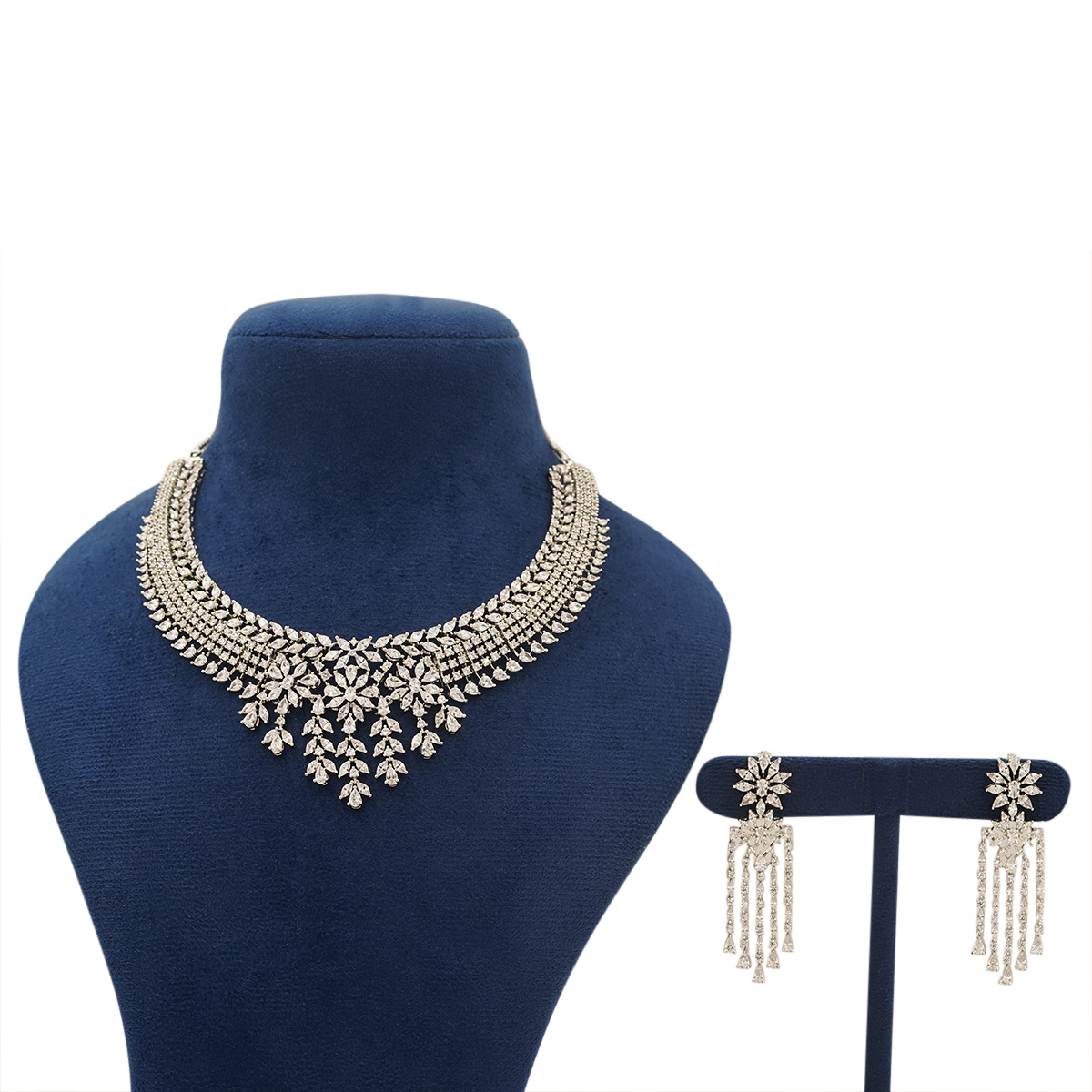 Royal Floral Cascade Zircon Necklace Set