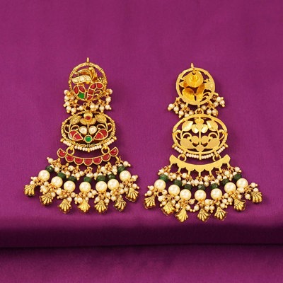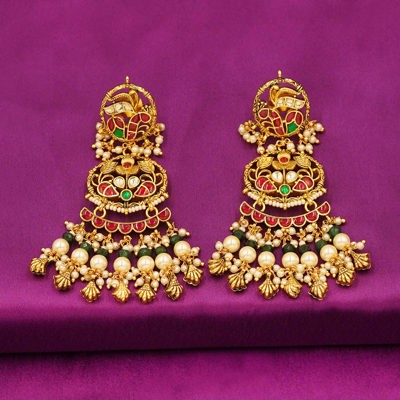 DESCRIPTION - Embrace regal elegance with these Royal Kundan Pearl Long Jhumka Earrings, designed to make every moment special. Featuring intricate floral and leafy patterns, stunning red and green enamel work, and multi-layered pearl hangings, these earrings reflect the richness of Indian tradition and craftsmanship.