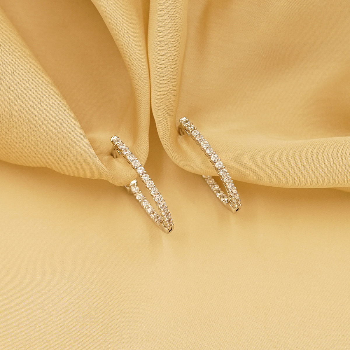 DESCRIPTION - DESIGNED WITH A SLEEK CURVED SILHOUETTE AND ENCRUSTED WITH SHIMMERING CRYSTALS, THEY REFLECT LIGHT BEAUTIFULLY FOR A REFINED YET EYE-CATCHING LOOK. LIGHTWEIGHT AND COMFORTABLE, THESE HOOPS ARE PERFECT FOR BOTH EVERYDAY ELEGANCE AND SPECIAL OCCASIONS. PAIR THEM EFFORTLESSLY WITH ETHNIC WEAR, EVENING OUTFITS, OR MODERN ENSEMBLES FOR A TOUCH OF ROYAL CHARM.