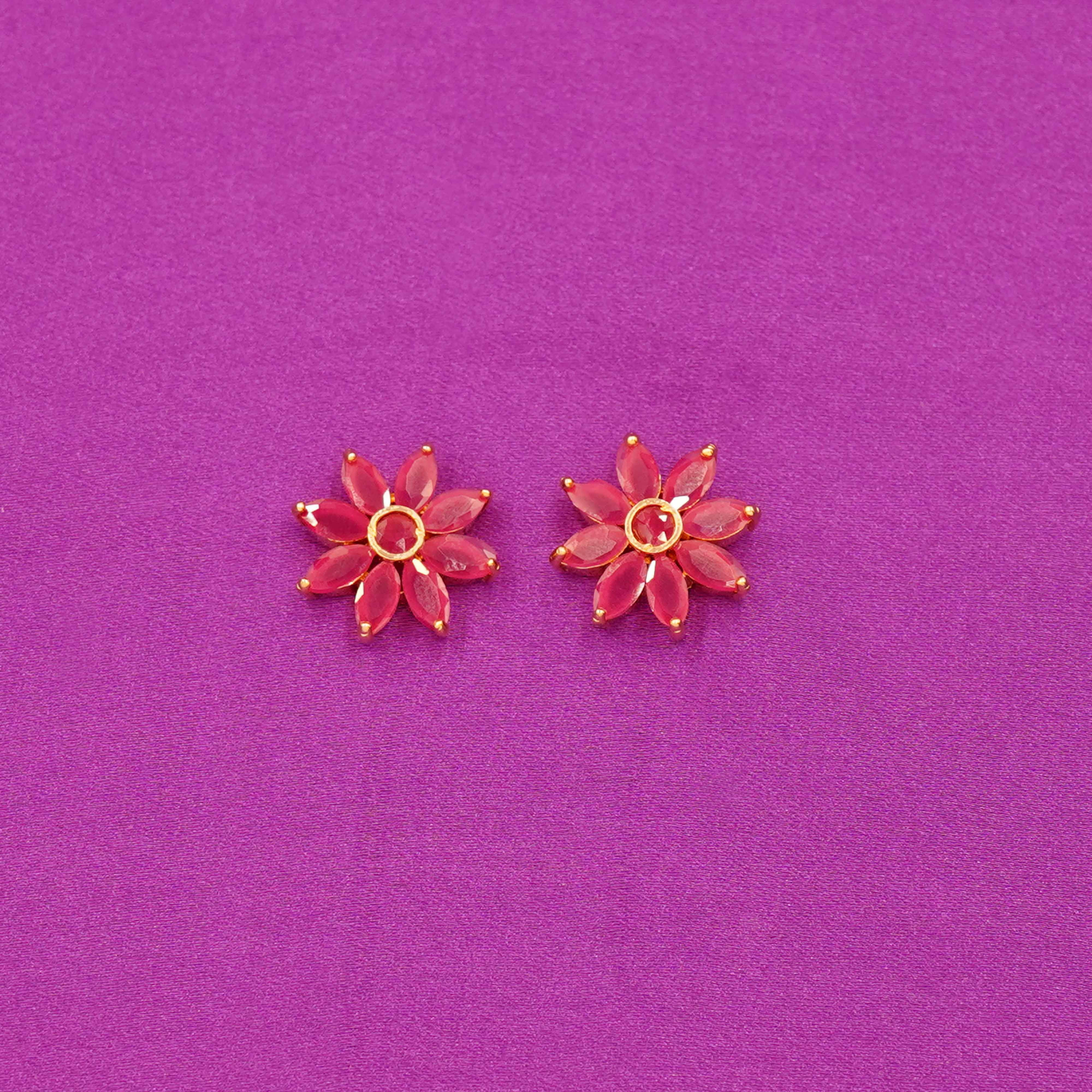 DESCRIPTION - Embrace floral elegance with the Rosy Petal Stud Earrings. These dainty earrings feature soft pink marquise-shaped stones arranged in a graceful bloom, finished with a glossy round centerpiece. Perfect for adding a feminine and cheerful accent to any outfit, whether for casual days or festive moments. A sweet style staple for flower lovers.