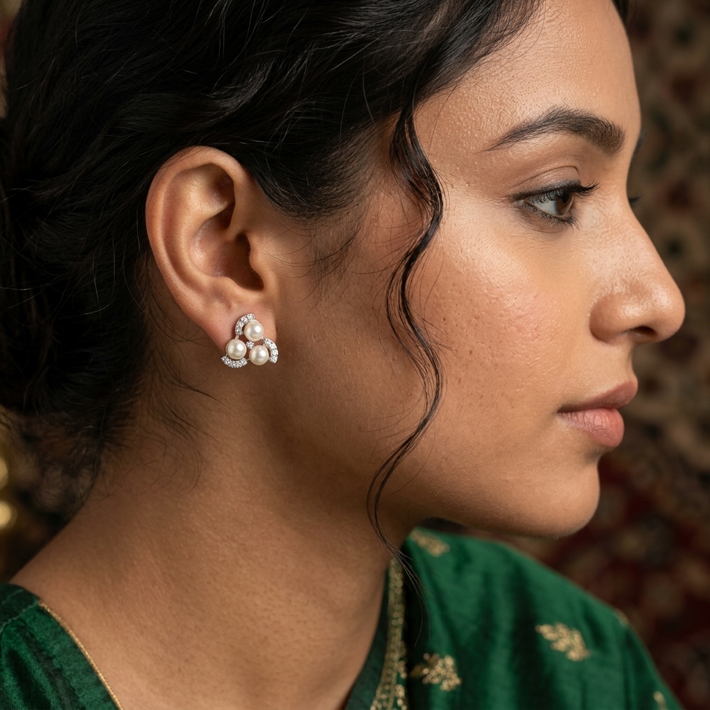STUD/TOPS/EARRING, Elegant Silver-Tone Stud Earring Set (3 Pairs) - Pearl & Crystal Design