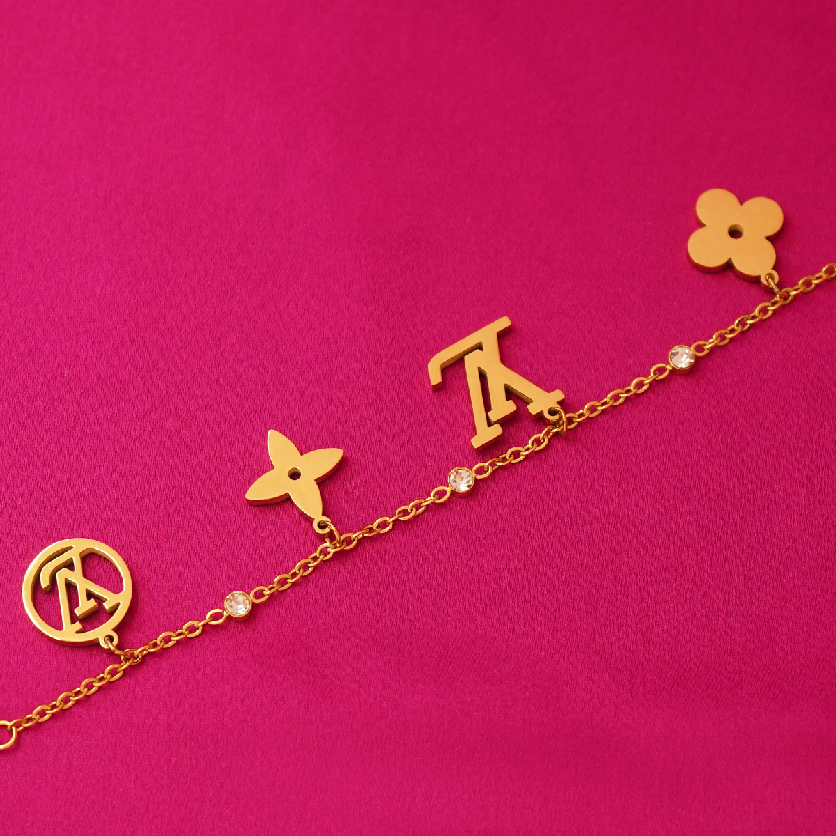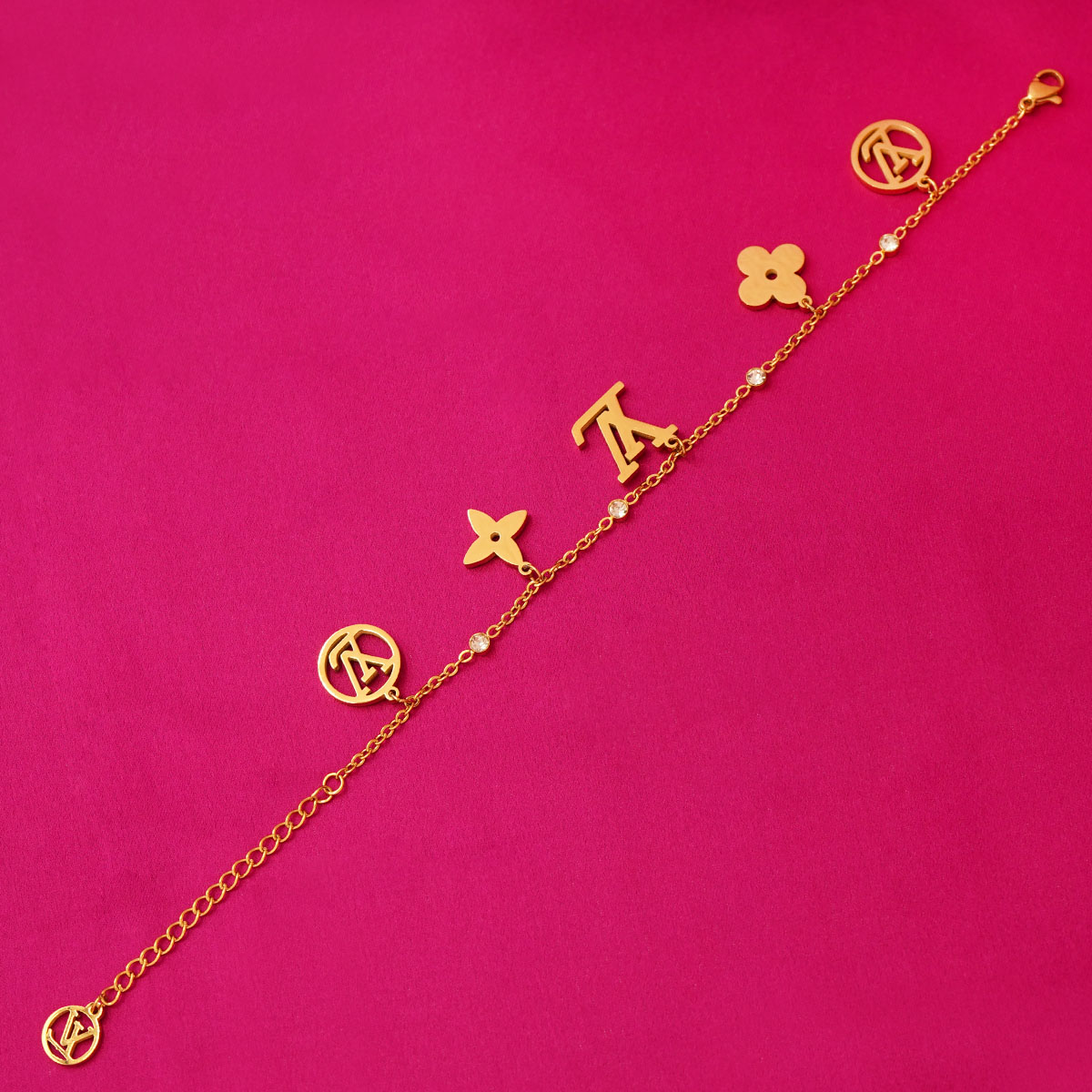 Stylish Golden Alphabet Charm Bracelet with Crystal Detailing