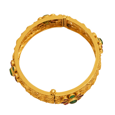 Traditional Gold-Tone Ruby and Emerald Studded Bangles