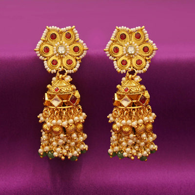Traditional Kundan & Beaded Choker Necklace Set with Jhumka Earrings