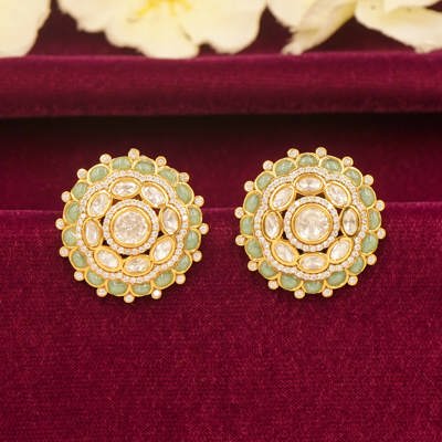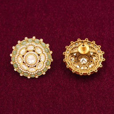 AakaashiPanna Baalis – Celestial Mint Kundan Studs of Jaipur