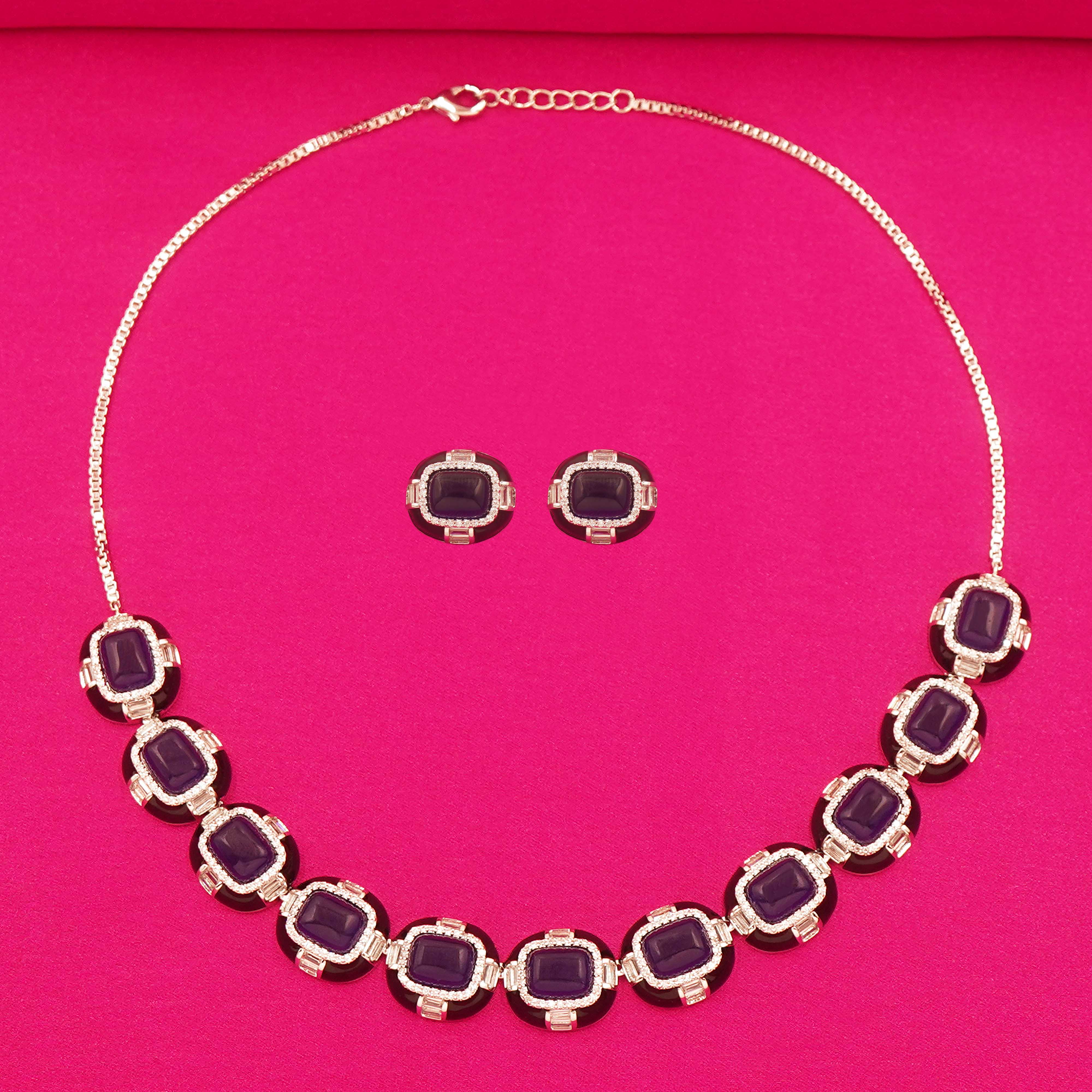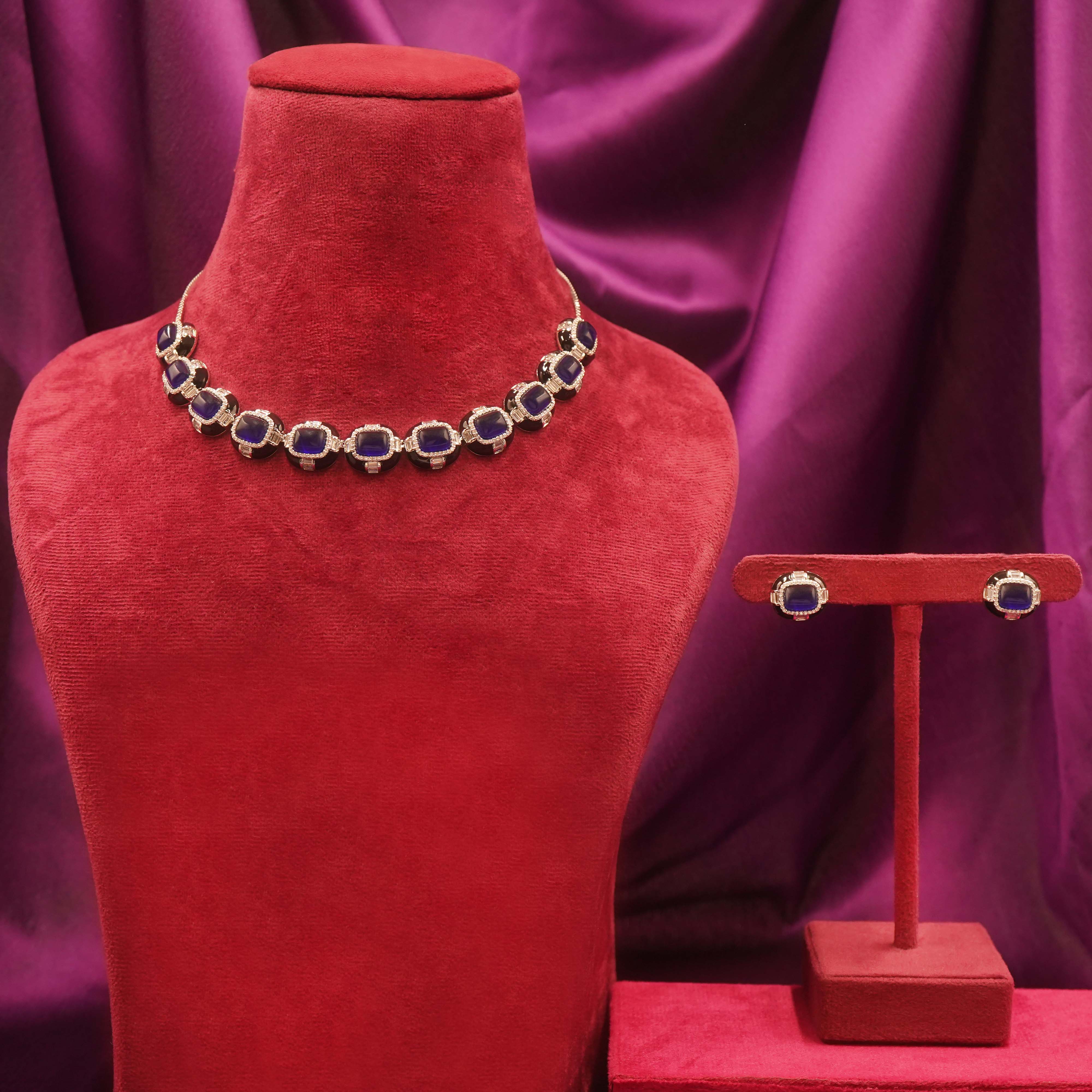 DESCRIPTION - A versatile set designed with blue stones in a timeless style. Light, elegant, and perfect to pair with sarees, lehengas, or western dresses.