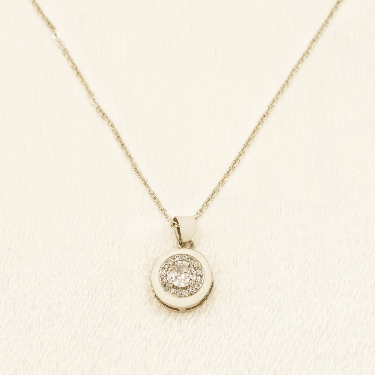 Classic Solitaire Halo Pendant Set in White Gold Tone Finish
