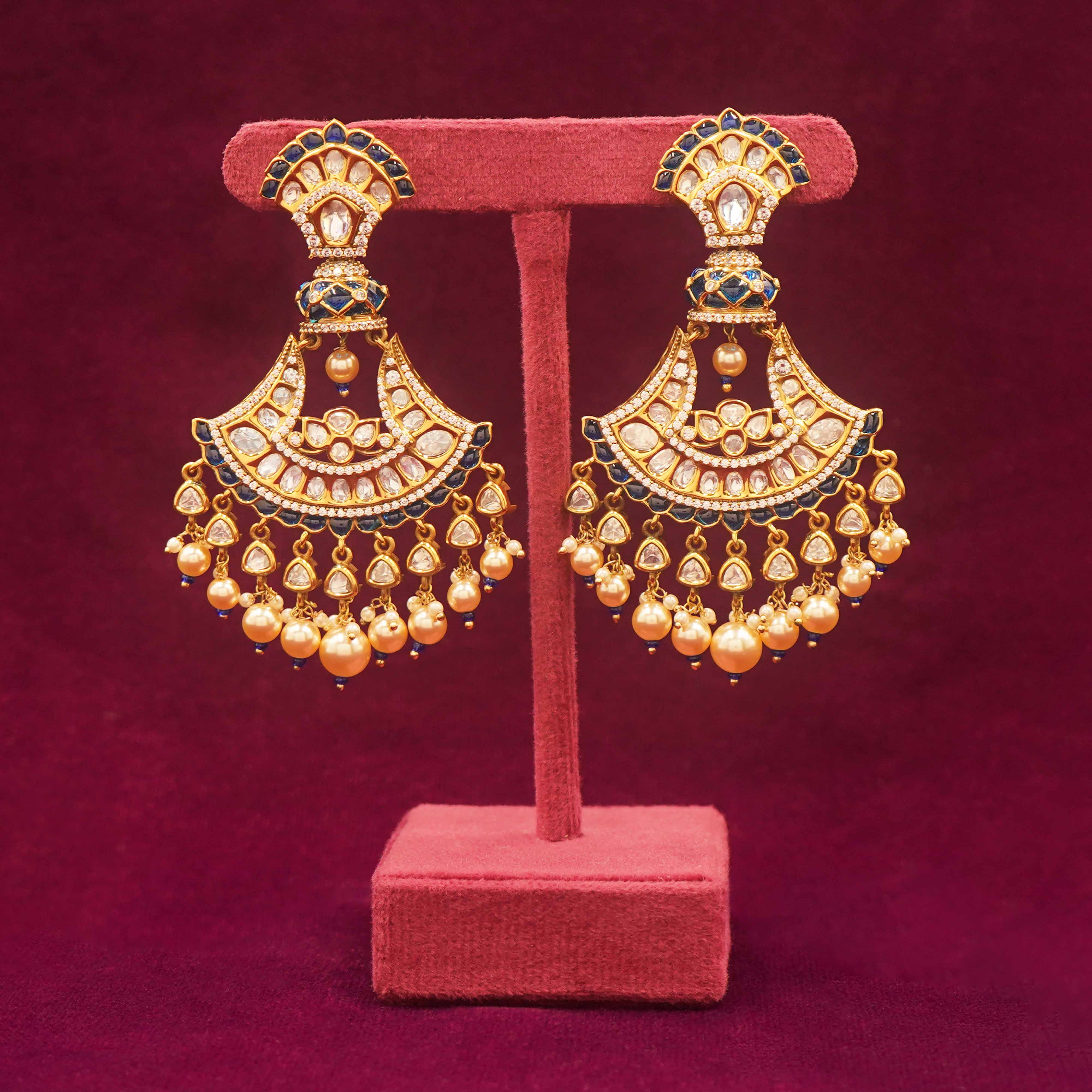 Earring - Royal Sapphire Kundan Chandbali Earrings - it classic