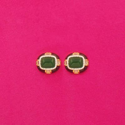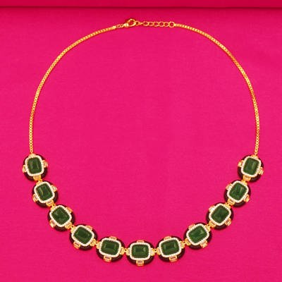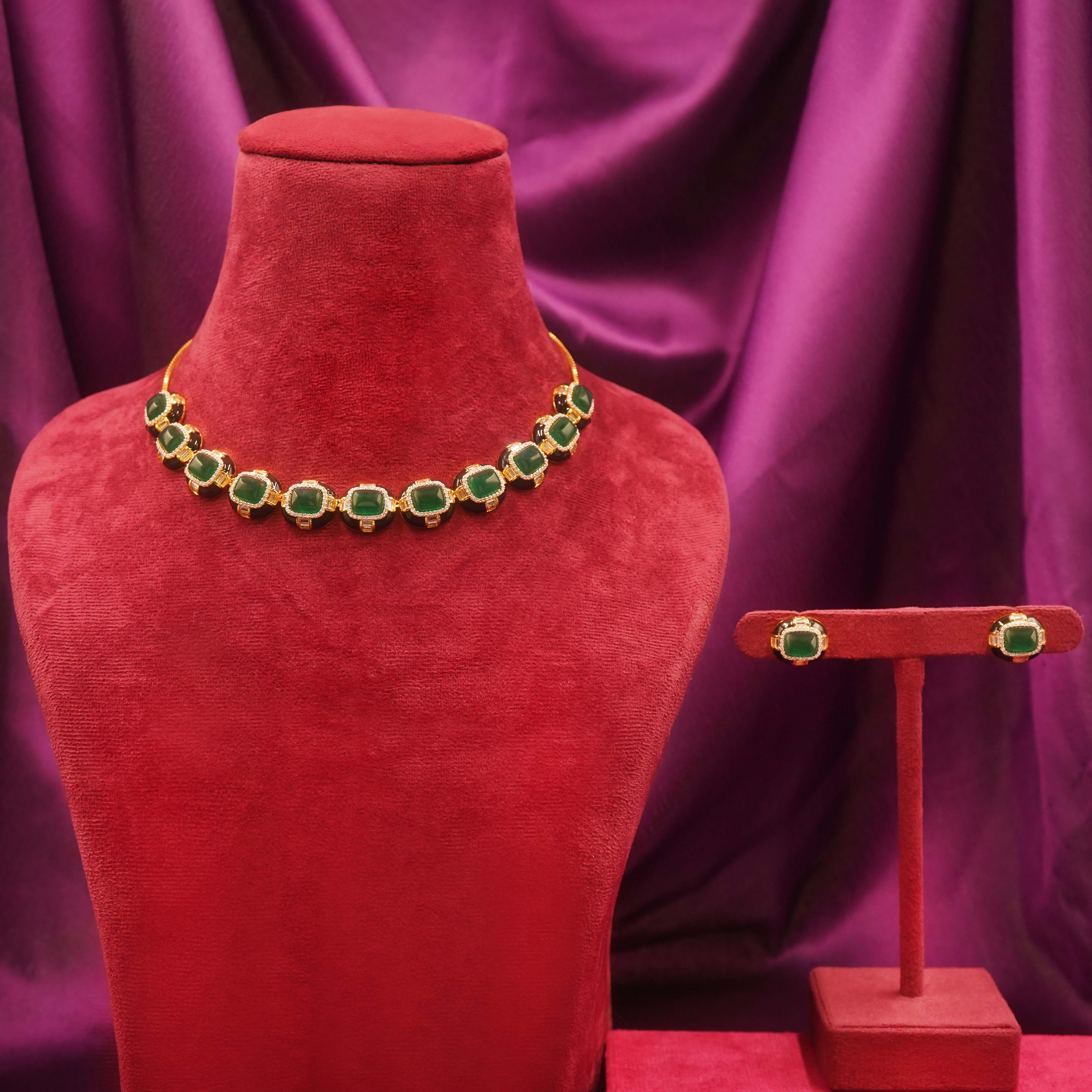 DESCRIPTION - Designed with deep green stones and golden outlines, this set stands out in any crowd. Whether it’s a cultural event or a formal gathering, it adds instant beauty. Comfortable to wear and effortlessly stylish for all-day occasions.