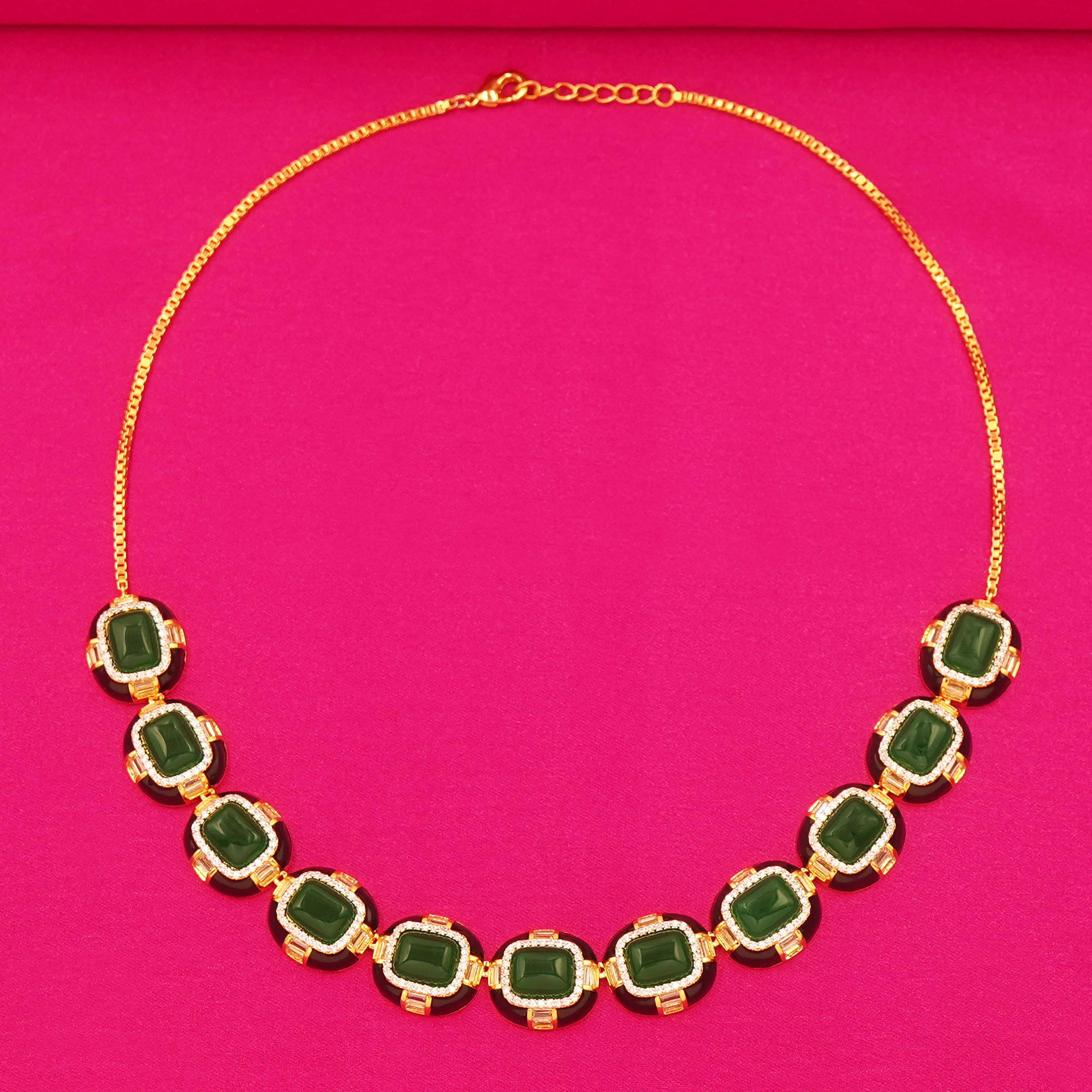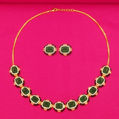Elegant Green Gem-Like Necklace with Matching Earrings for Women