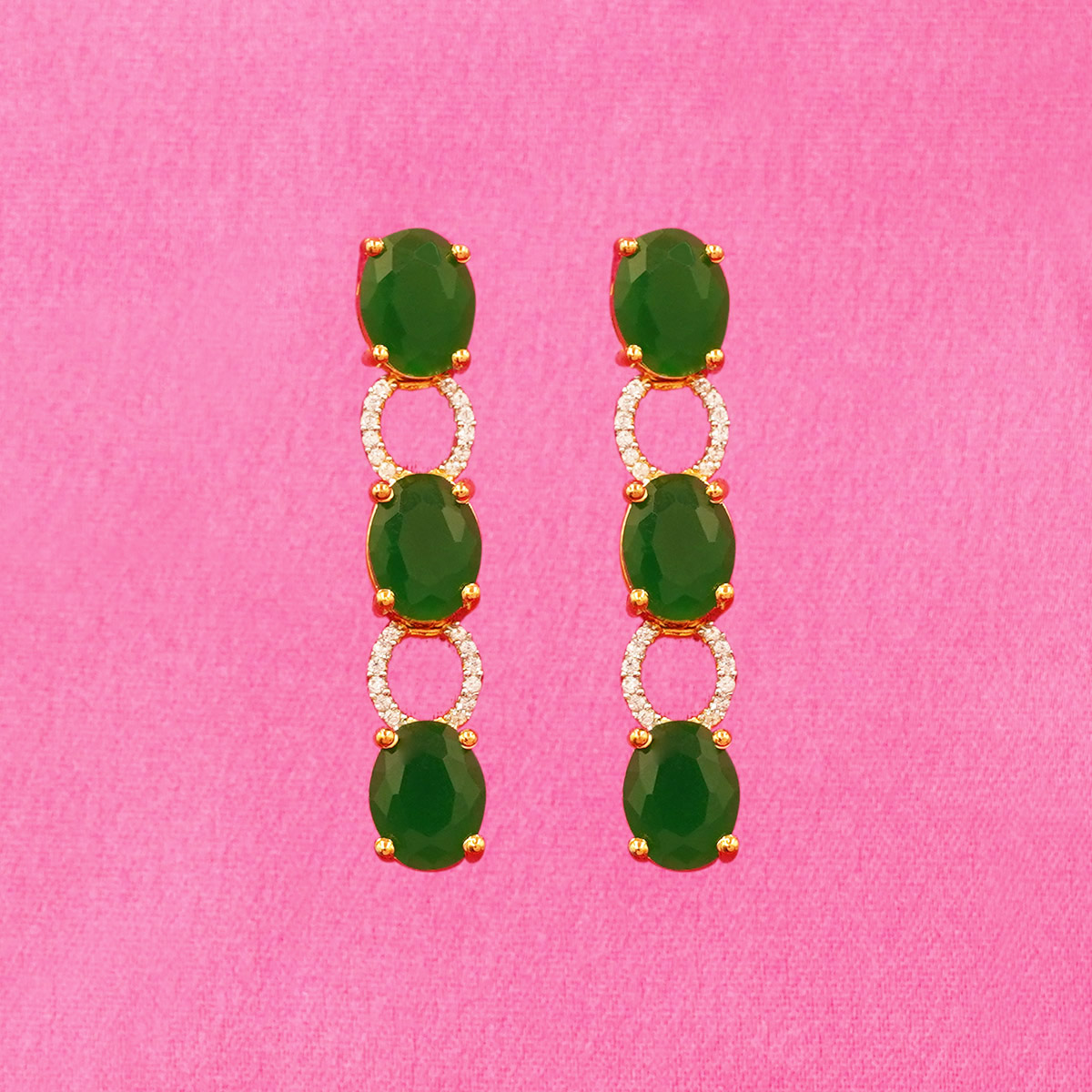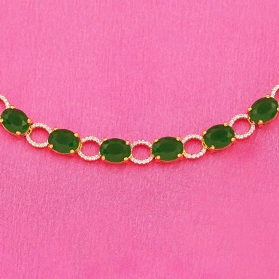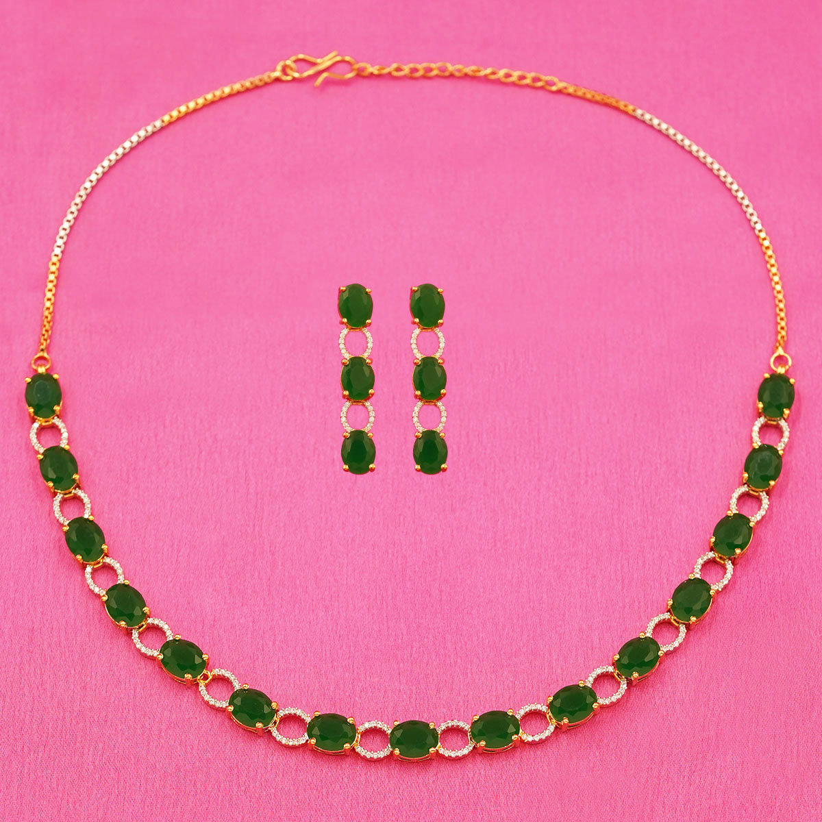 DESCRIPTION - A graceful necklace set adorned with rich green oval stones and sparkling accents, paired with matching earrings for a refined, timeless look.